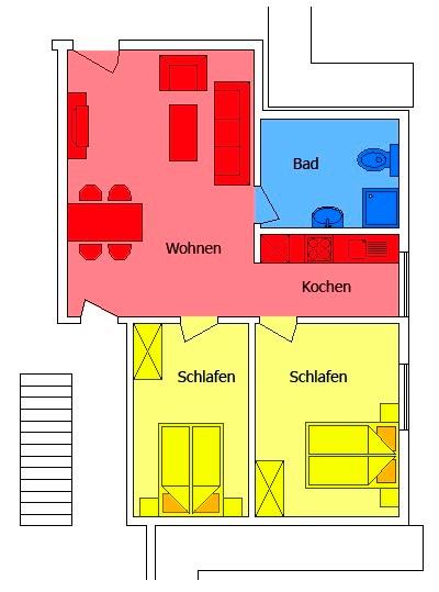 ,3 Zimmer Ferienwohnung (ca. 50 qm) in ruhiger Sackgassenlage, nur ca. 500 m zum Strand und zur Promenade.