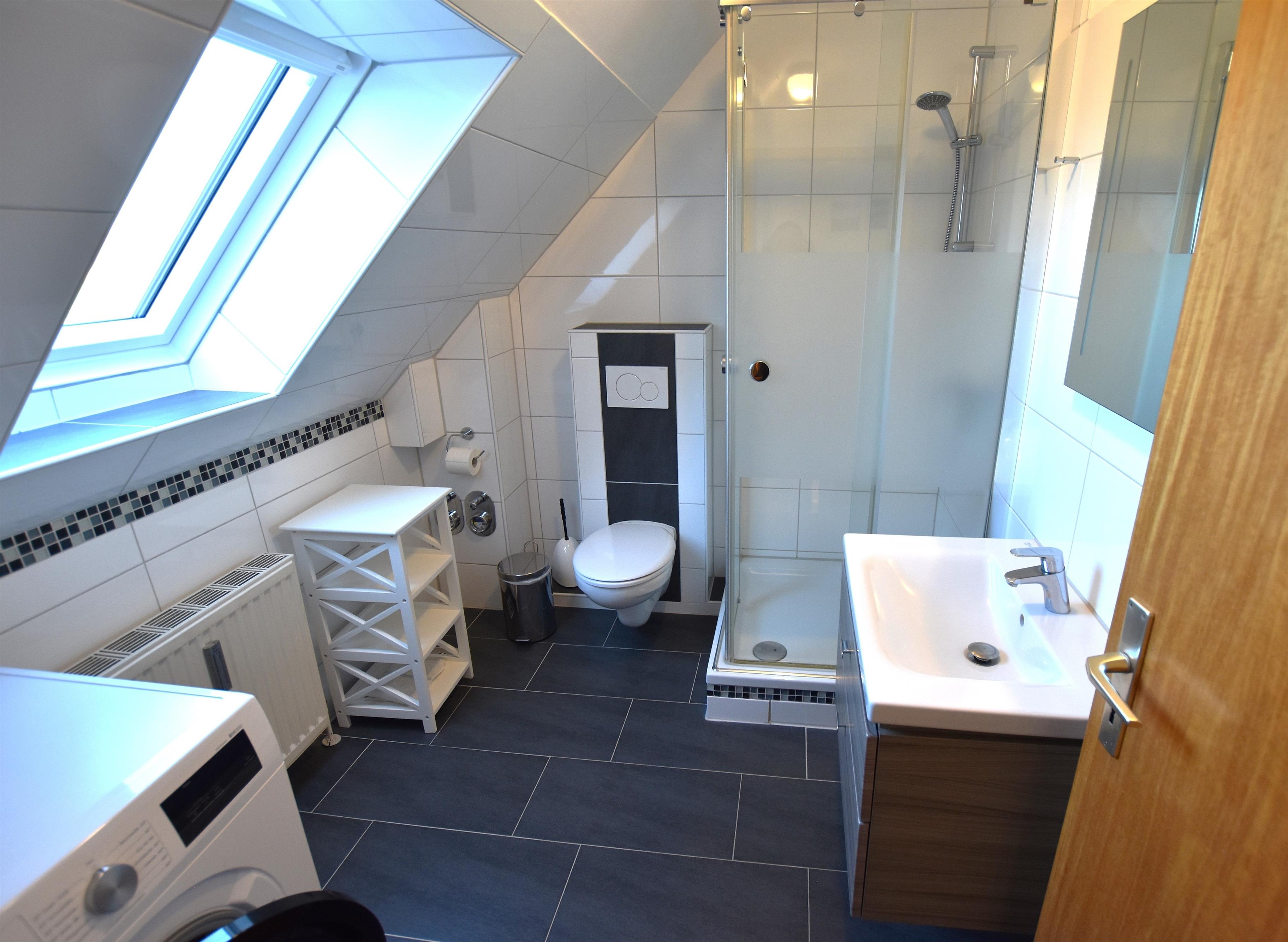 Bad mit Dusche und WC.