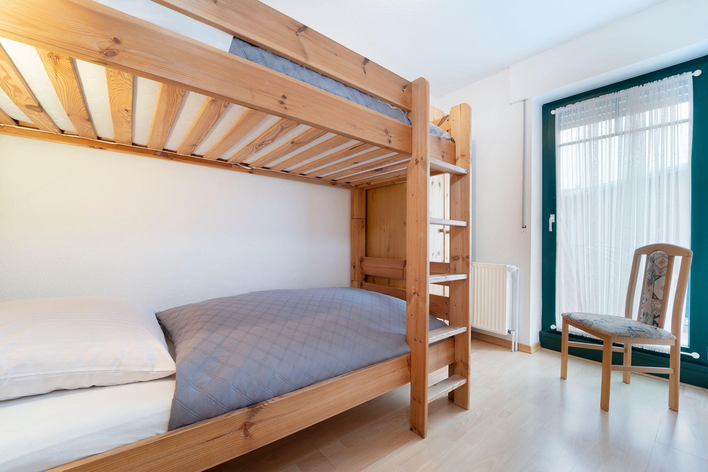 Schlafzimmer: 2 Etagenbett (2x 90x200 cm), Härtegrad 2, Verdunkelung (Außenjalousie)