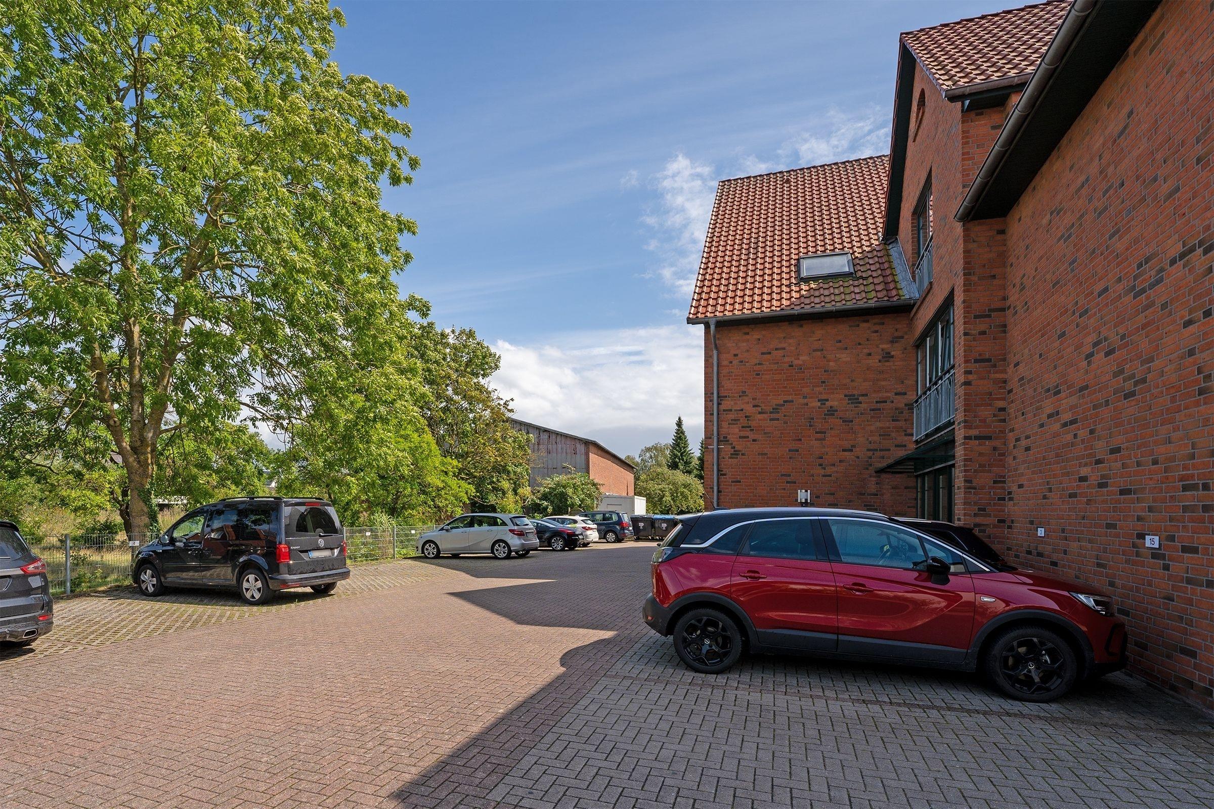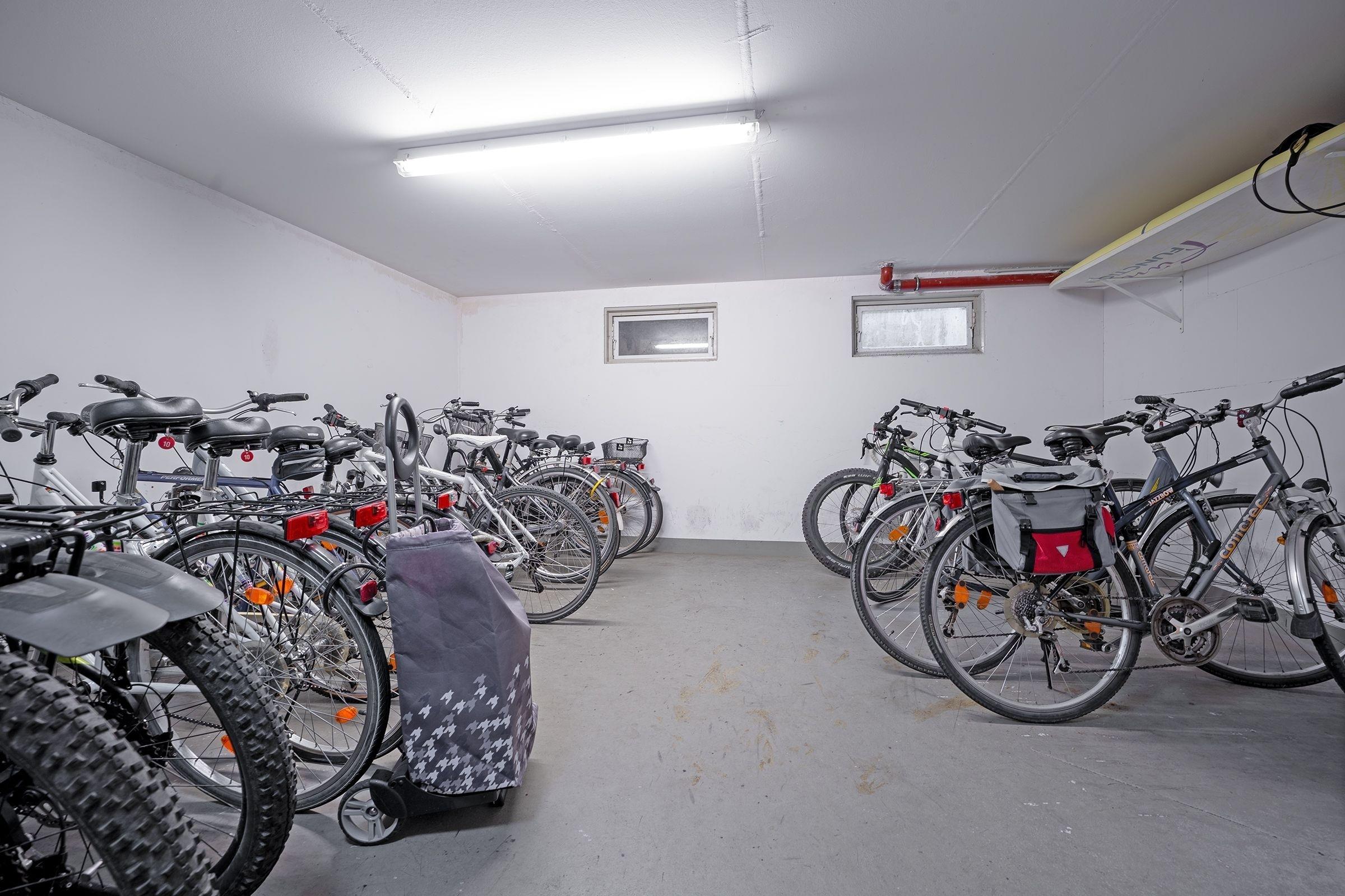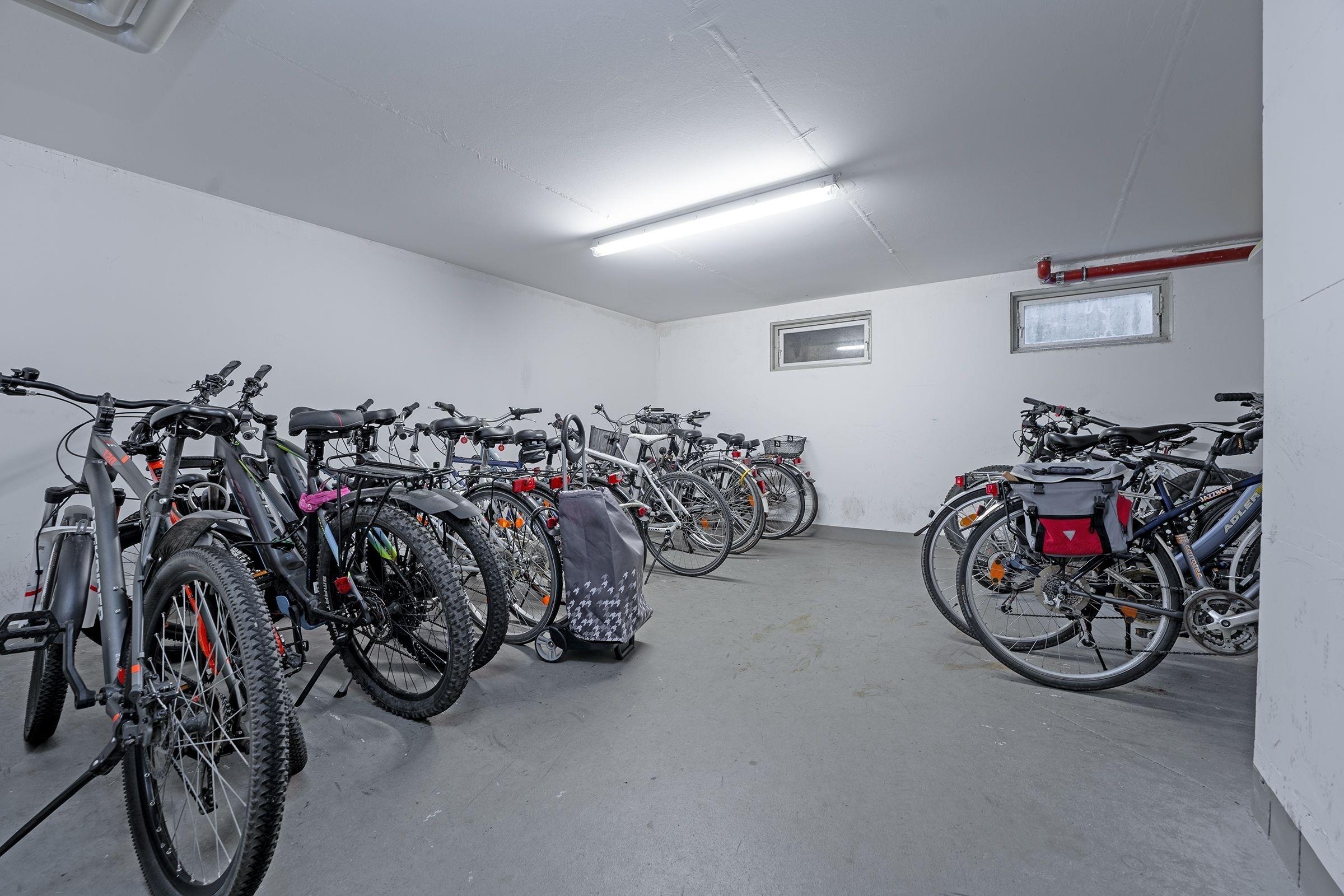 Ein PKW-Außenstellplatz haben Sie auf dem Grundstück, den Fahrradabstellplatz im Keller. Außerdem befindet sich im Haus eine Gemeinschafts-Waschküche mit Waschmaschine und Trockner.