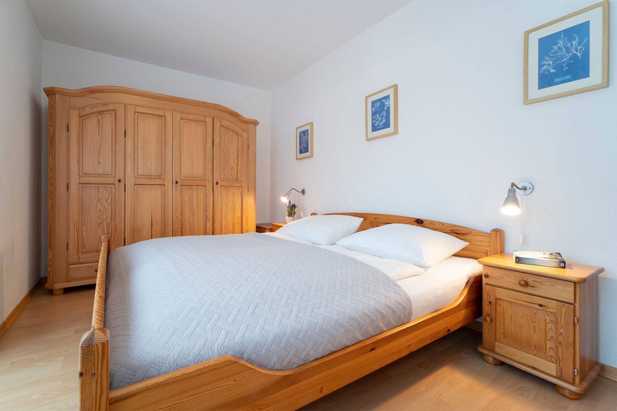 Schlafzimmer: 1 Doppelbett (2x 90x200 cm), Federkernmatratze, Kleiderschrank, Verdunkelung (Außenjalousie)