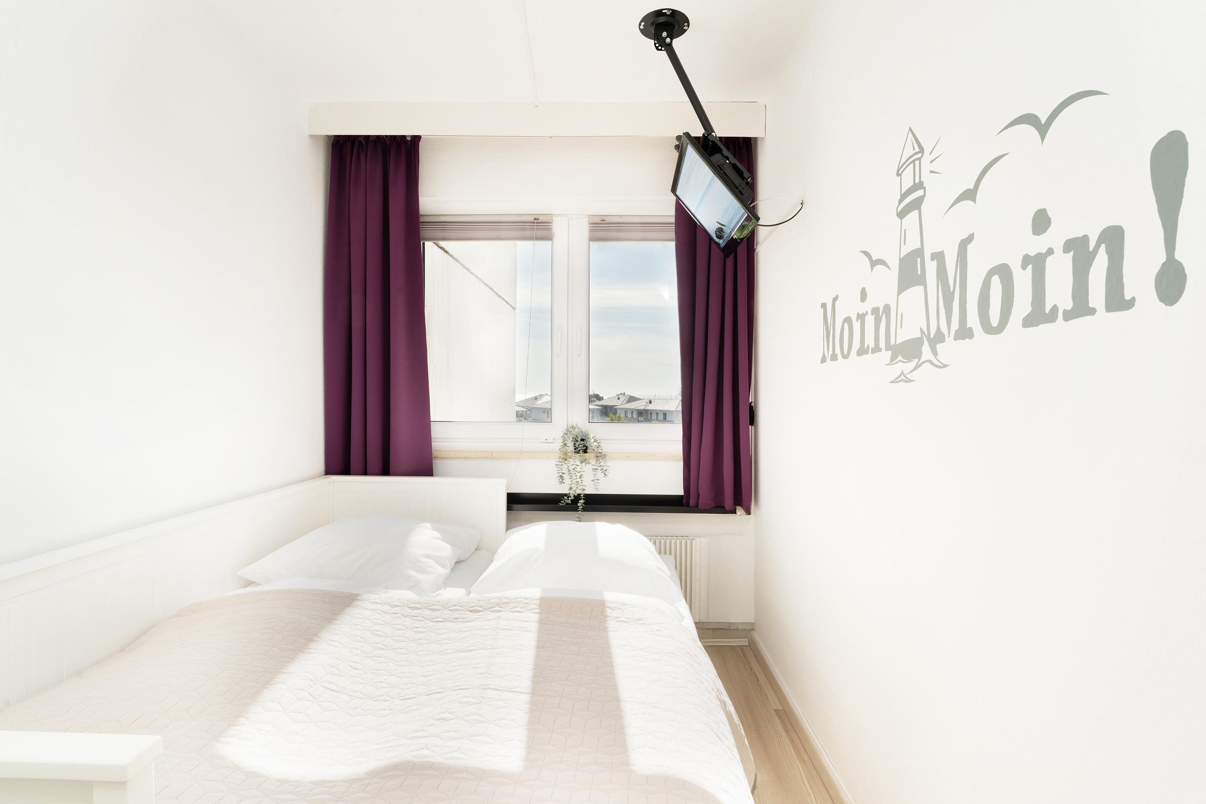 Wohn/Schlafzimmer: 1 Doppelbett (2x 90x200 cm), TV, Kleiderschrank, Verdunkelung (Außenjalousie)