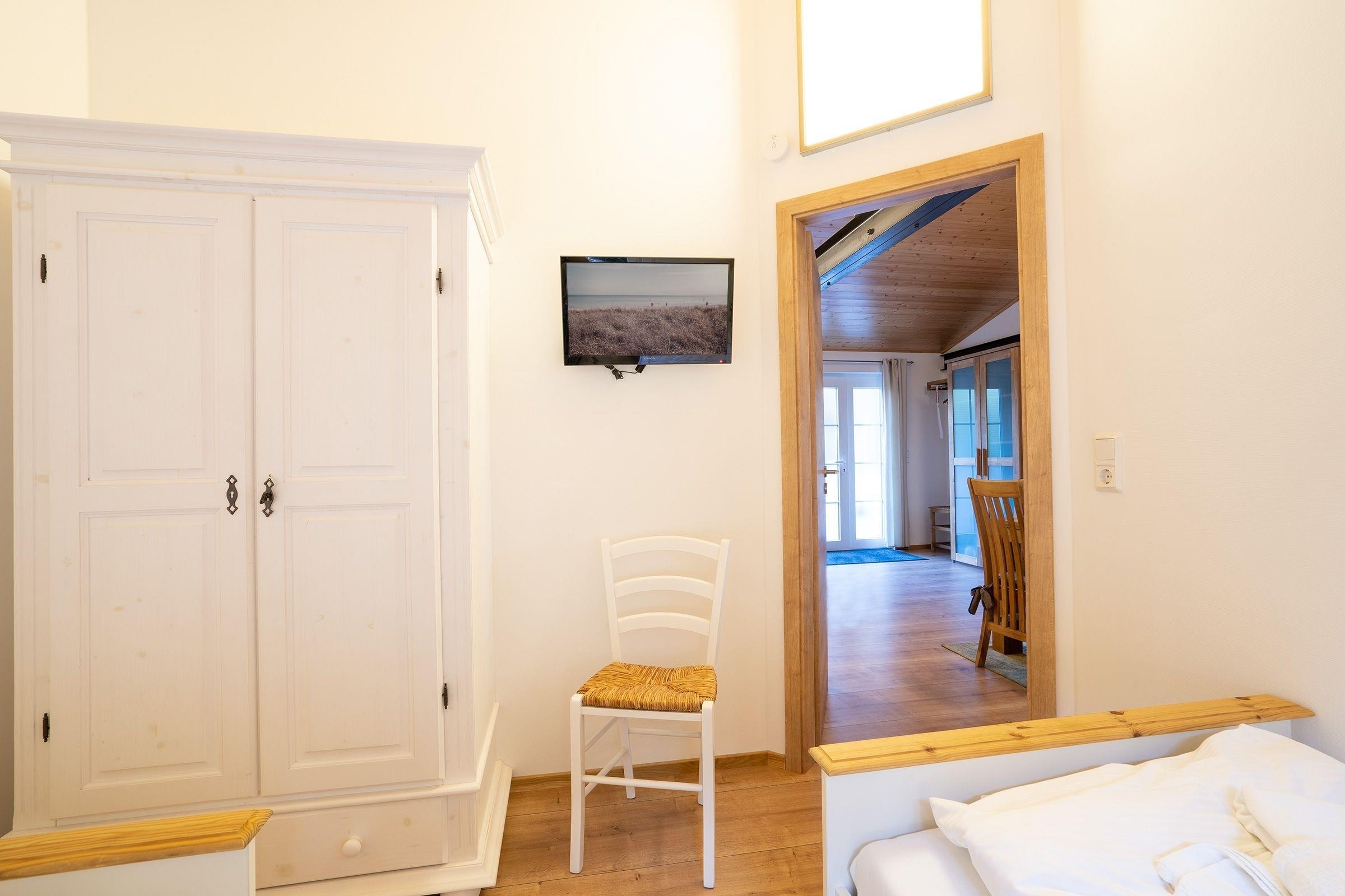 Schlafzimmer 2: 2 Einzelbetten (2x 90x200 cm), TV, Kleiderschrank