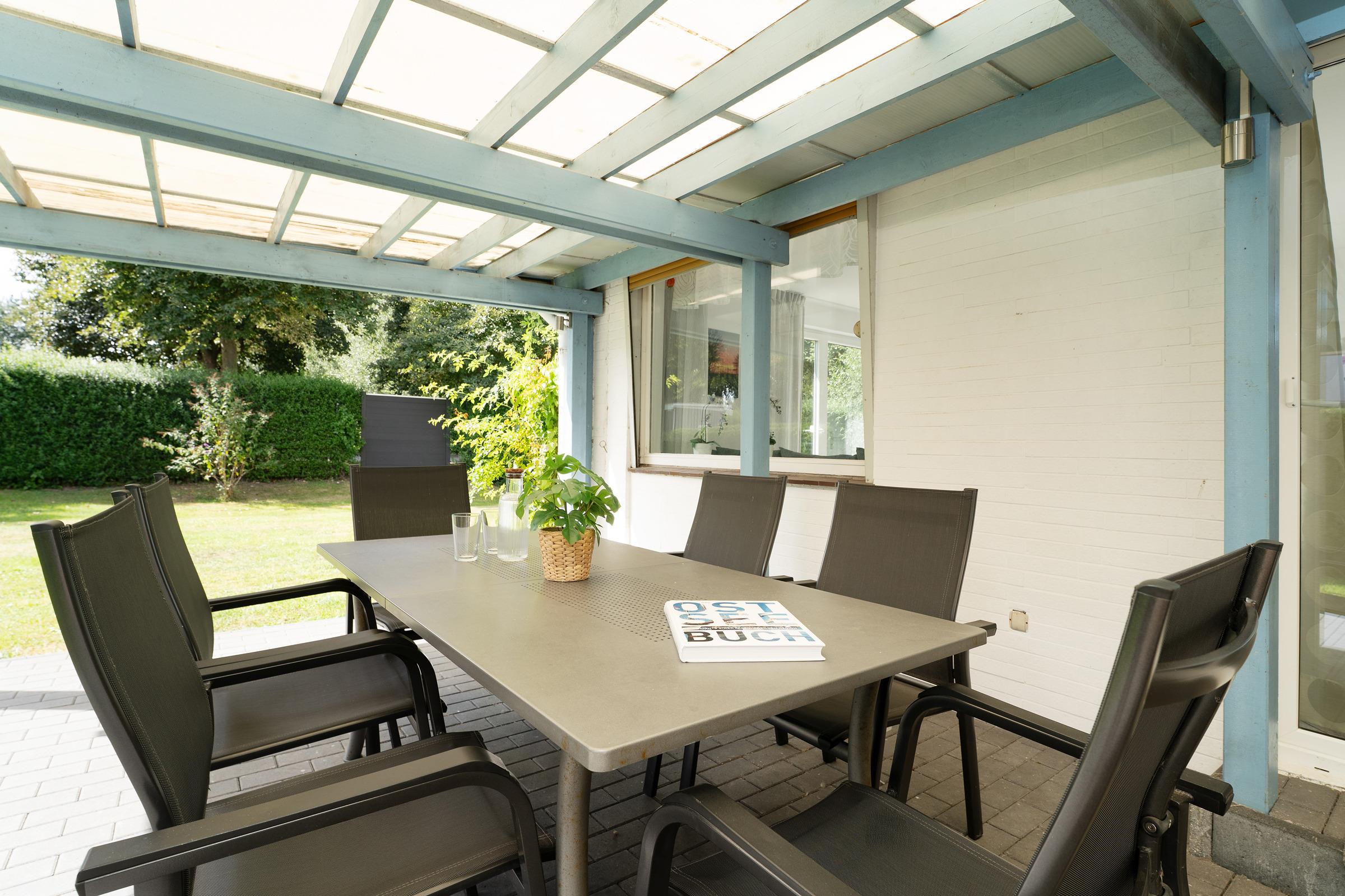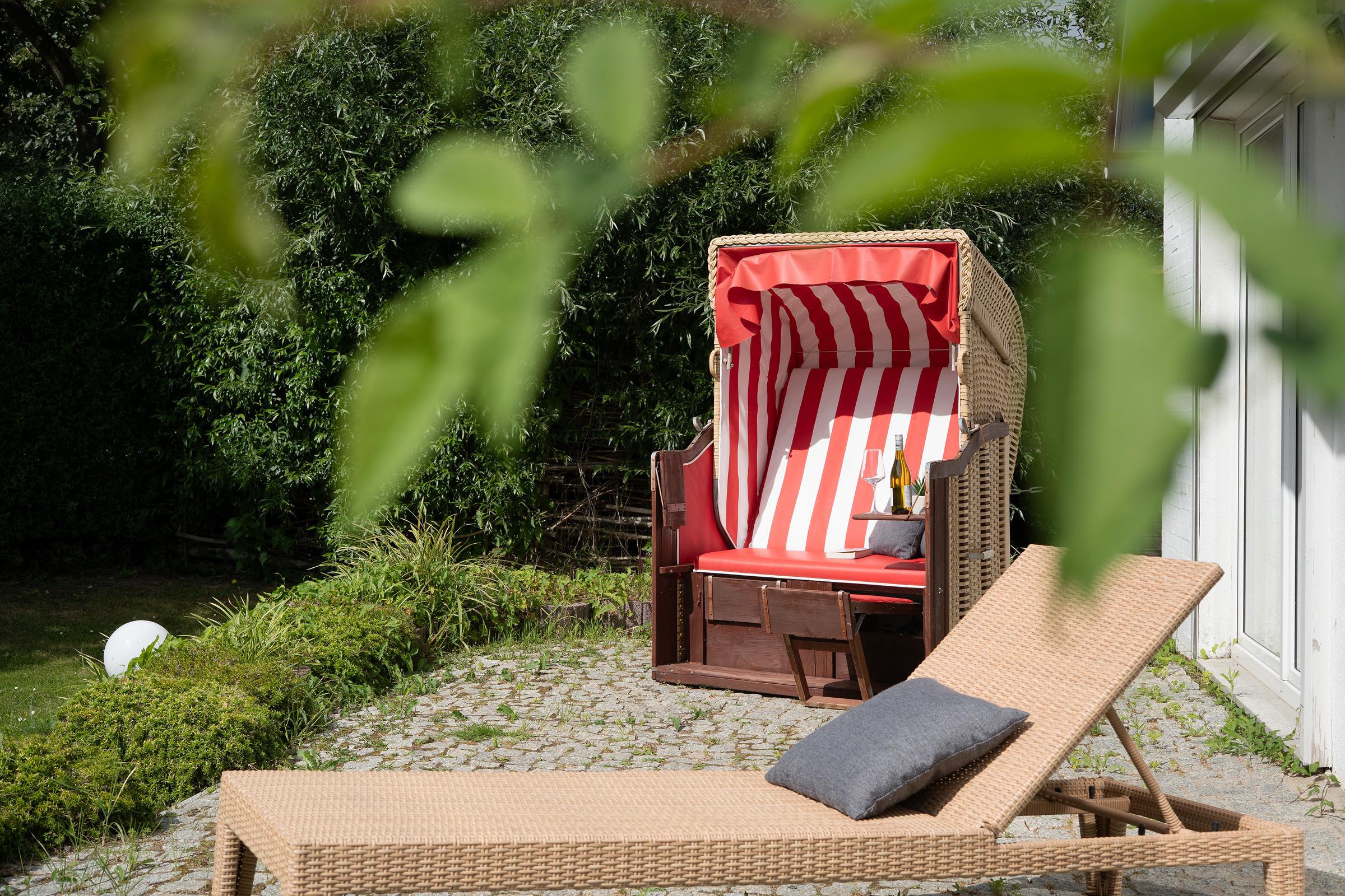 Bei dieser Wohnung sind 2 eigene Terrassen vorhanden. Im Garten können alle Feriengäste vom Strandhaus Bornhausen gemeinschaftlich einen Grillplatz sowie 2 Strandkörbe und 2 Strandliegen nutzen. Ein spektakulärer Außenbereich - so fühlt sich Urlaub an!