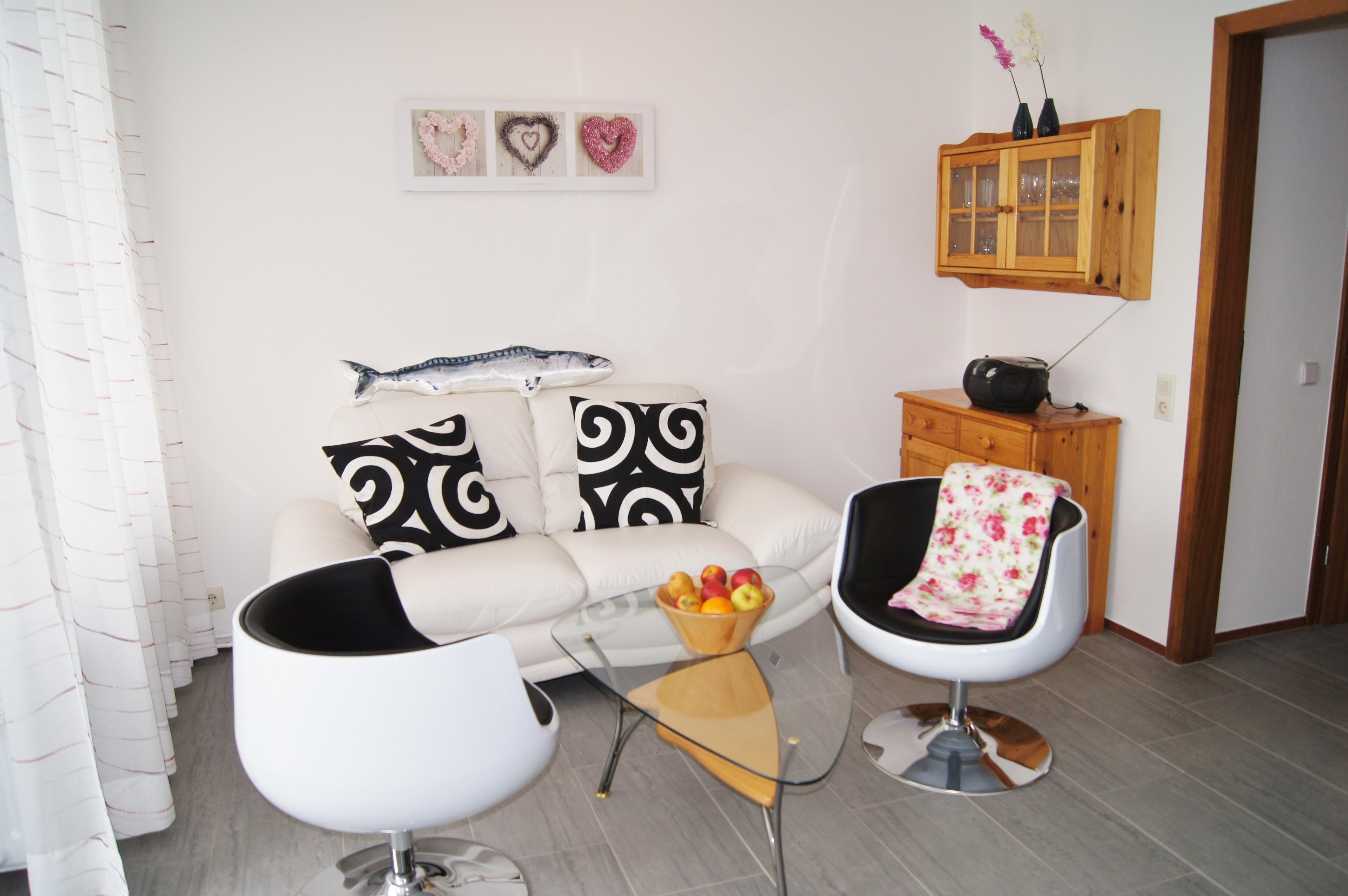 Die Wohnung besteht aus einem Wohn- Essbereich mit Zugang zur gemütlich möblierten Terrasse, Küche mit Herd und Geschirrspüler, Kinderzimmer mit 2 Einzelbetten, Duschbad, separatem WC, und vom Wohnbereich separiertem optisch abgetrenntem Schlafbereich. Aus dem Wohnzimmer und von der Terrassegenießen Sie den Weitblick über Felder. Neben Terassenmöbeln steht auf der Terasse ein Original Dahmer Strandkorb. Zugleich ist die Ortsmitte und der Strand fußläufig in wenigen Minuten erreichbar.