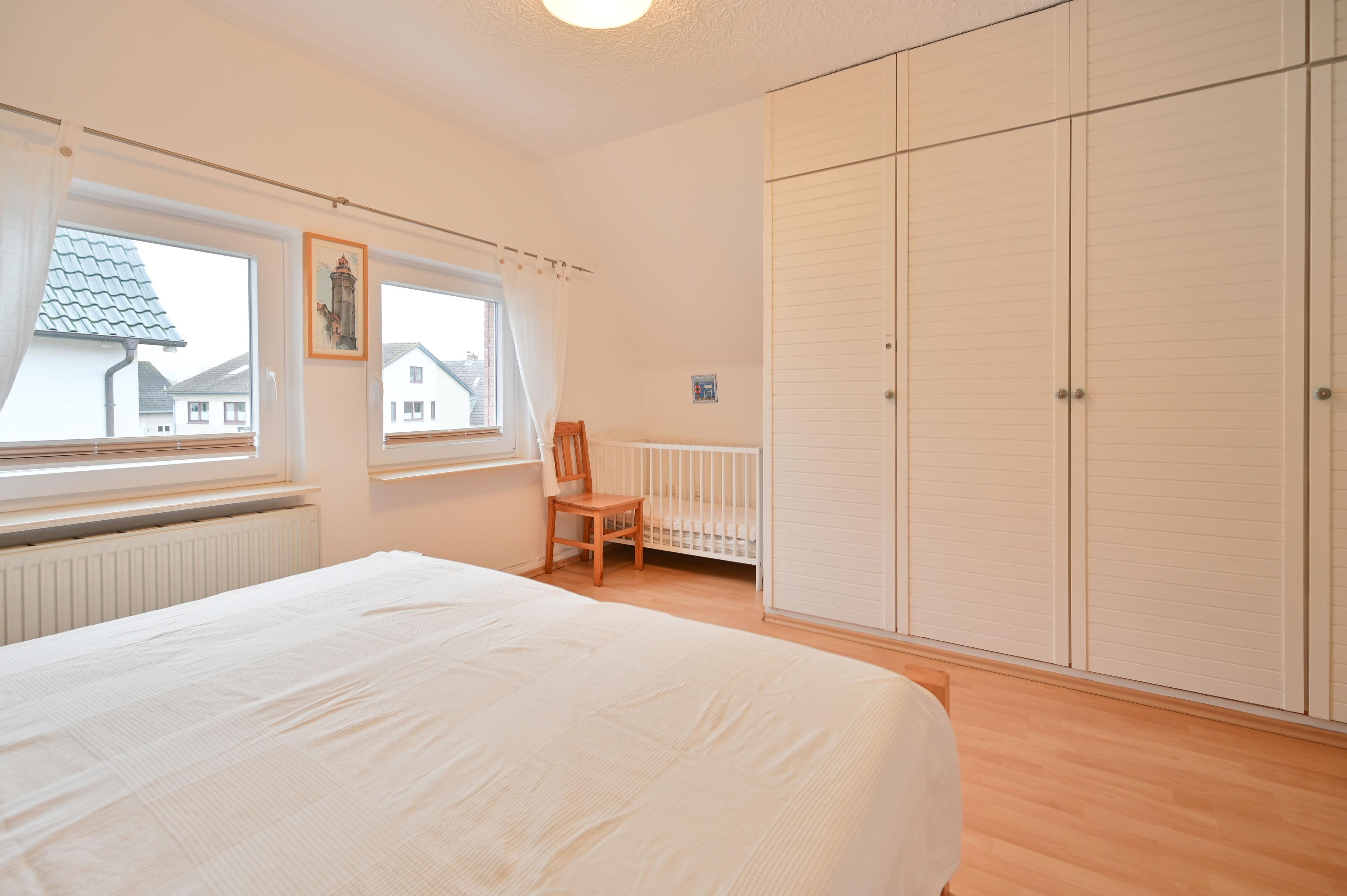 Im großen Elternschlafzimmer erwartet Sie ein komfortables Doppelbett (1,80 x 2,00 m) sowie ein Kinderbett (70 x 1,40 m). Das zweite Schlafzimmer ist mit einem Doppelbett (1,40 x 2,00 m) ausgestattet - ideal für Kinder oder weitere Mitreisende. Eine separate Toilette befindet sich ebenfalls auf dieser Etage. Außerdem steht im Anbau ein weiteres Schlafzimmer mit LCD-Flachbild-TV zur Verfügung.