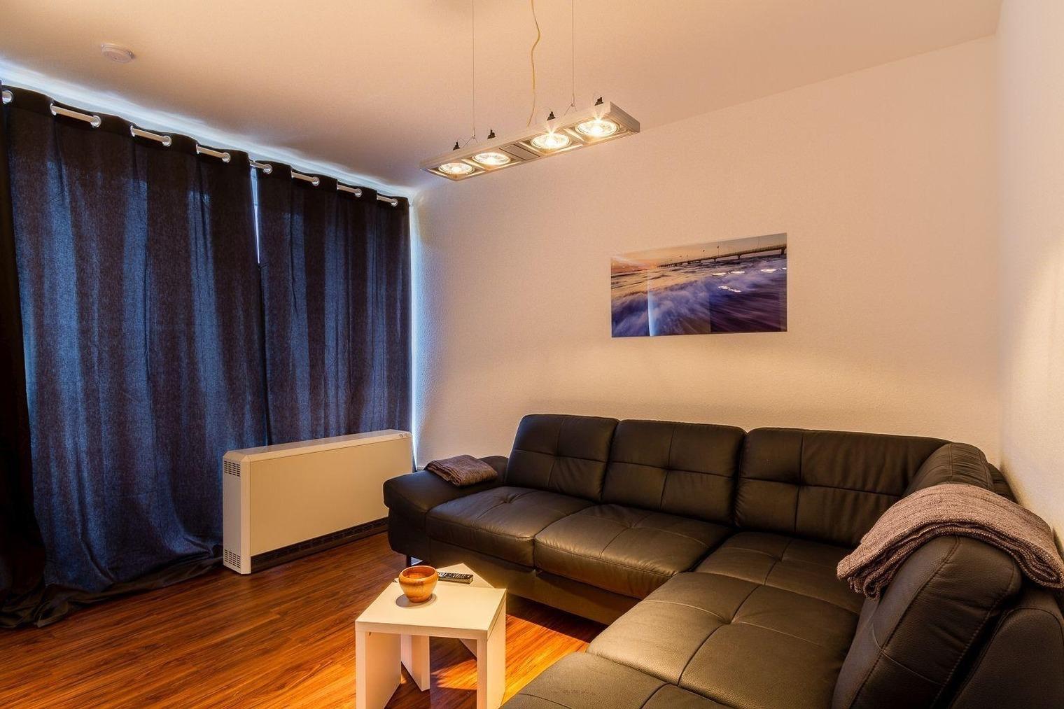 Die Ferienwohnung "Mour" ist ein Mittelreihenhaus, das über zwei Etagen für bis zu vier Personen Platz bietet. Im Erdgeschoss befinden sich ein Eingangsbereich mit Garderobe, ein lichtdurchflutetes Wohn- und Esszimmer mit einer integrierten, voll ausgestatteten Küche, die mit einem Geschirrspüler, Backofen, Mikrowelle und einer Waschmaschine ausgestattet ist. Das Badezimmer verfügt über Dusche, WC und ein Fenster.