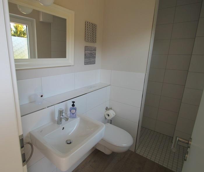 Das Haus verfügt über drei geschmackvoll eingerichtete Schlafzimmer, die allesamt Ruhe und Erholung bieten. Eines der Schlafzimmer ist mit einem Babybett ausgestattet, sodass auch die kleinsten Gäste bei Ihnen willkommen sind. Darüber hinaus sind zwei moderne Badezimmer vorhanden, beide mit bodengleich zugänglicher Dusche, das obere sogar mit einer Badewanne – ideal für entspannende Wellness-Momente nach einem langen Tag.