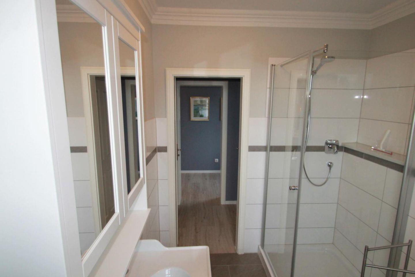 Wohnung Leuchtturm - Haus im Stil der Bäderarchitektur. Ferienwohnung im Obergeschoss. Über den Eingangsflur gelangen Sie in den Wohnbereich mit offener Küche. Ein separates Tageslichtduschbad und ein Abstellraum ergänzen diese im Landhausstil eingerichtete Wohnung. PKW-Stellplatz auf dem Grundstück. Im Nebengebäude haben die Hausgäste die Möglichkeit die Waschmaschine und den Trockner gegen Gebühr zu nutzen.