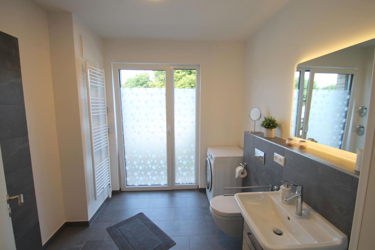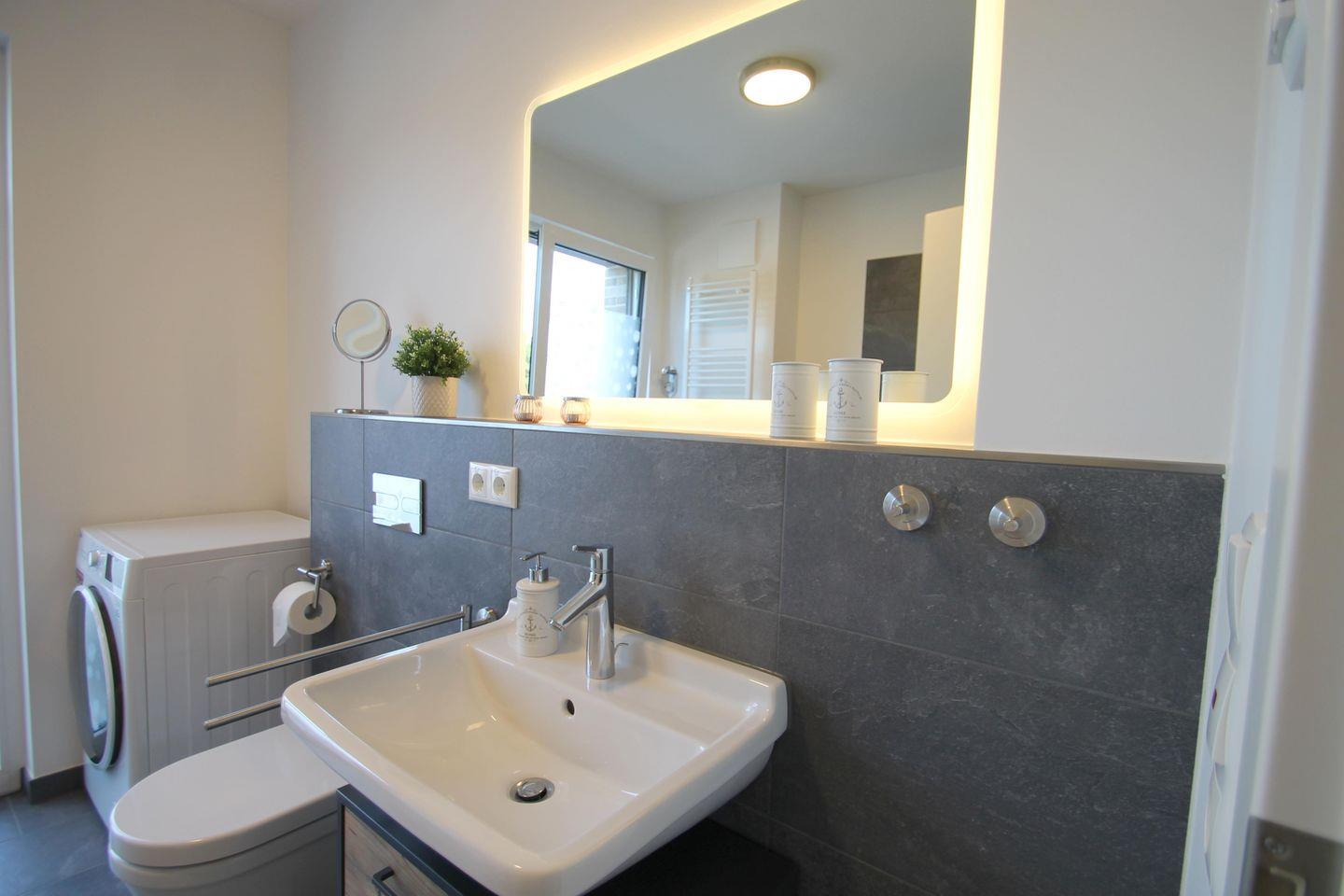 Neubau! Top ausgestattete, sonnige und ruhige 56 m² große 2 Zimmer Ferienwohnung für zwei bis vier Personen direkt am Deich von Dahme. Die Wohnung liegt im Parterre und hat eine schöne Terrasse mit angrenzendem kleinen Garten, der mitbenutzt werden darf. Ob junges Paar, junge Familie, Best Agers oder Senioren, die Wohnung in unmittelbarer Strandnähe bietet allen den perfekten Ort für die schönsten Tage im Jahr. Der Strand für das vierbeinige Familienmitglied ist keine 200 m entfernt. Die großen Fenster lassen viel Helligkeit in die gemütliche Wohnung, in der es an nichts fehlt, was einen Urlaub lebens-und liebenswert macht. Die moderne, in den Wohnraum offen integrierte Küche mit Spülmaschine, Induktionskochfeld, Senseo- sowie Kaffeemaschine und vielen weiteren Annehmlichkeiten wird Sie überzeugen. Hier befindet sich auch das komfortable Schlafsofa (160x200 cm mit Ergoflex Lattenrost und hochwertiger Matratze) für zwei Personen. Im Schlafzimmer befindet sich neben dem zweiten TV ein bequemes Boxspringbett (180x200 cm). Das Badezimmer überzeugt mit viel Tageslicht und großer, begehbarer Dusche und einem beheizbaren Handtuchhalter. Außerdem finden Sie hier den Waschtrockner. Zur Wohnung gehört der eigene PKW-Stellplatz direkt am Haus. Die Fußbodenheizung sorgt auch in der Übergangs- und Winterzeit für eine wohlige Wärme. Stilsicher, stylisch und strandnah - wünscht man im Urlaub me(e)(h)r?