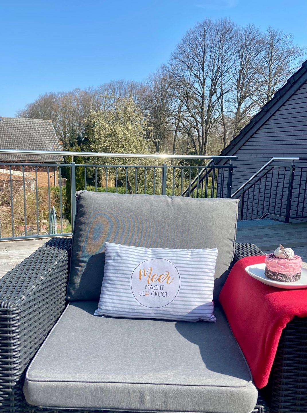 das Elternschlafzimmer mit Doppelbett (1 x 180x200 cm) und das Kinderzimmer mit Tagesbett wo im Handumdrehen Platz für Übernachtungsgäste geschaffen wird. Einfach die Liegefläche herausziehen und schon haben Sie ein bequemes Doppelbett (2 x 80x200 cm)!! Selbstverständlich können Sie die Veluxfenster in den Schlafzimmern verdunkeln. Ein Wohlfühlbad mit bodengleicher Dusche und ein Gäste-WC gehören ebenfalls zur Wohnung. Besonderes Highlight dieser Wohnung ist zweifelsohne die zirka 30 m² große Dachterrasse mit Lounge Möbeln und einem Strandkorb in Südwest-Sonnenlage. Der PKW-Stellplatz vor dem Haus gehört zu dieser Wohnung. Ihre mitgebrachten Fahrräder können Sie im Garten abstellen. Ein Kinderbett und ein Kinderhochstuhl sowie ein Bollerwagen für die kleinen Gäste gehören zur Grundausstattung.