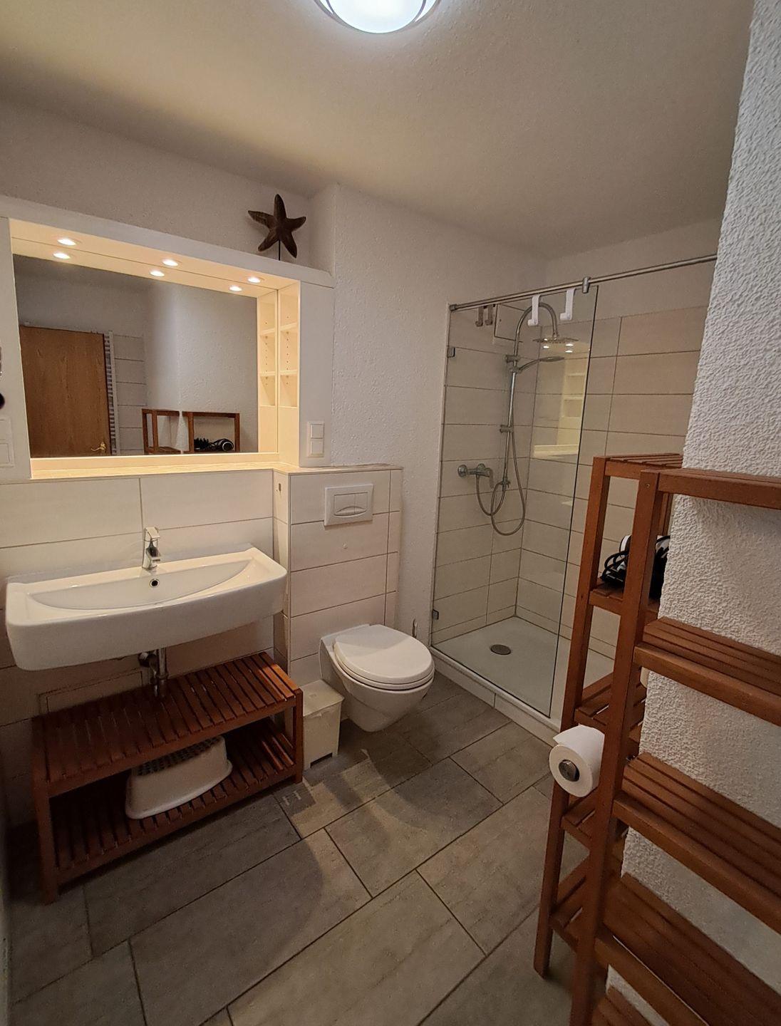 Zur Entspannung nach einem erlebnisreichen Tag bietet die Ferienwohnung eine moderne Dusche sowie einen Haartrockner. Für die Unterhaltung ist ein Fernseher vorhanden und auch WLAN sorgt dafür, dass Sie immer verbunden bleiben können.