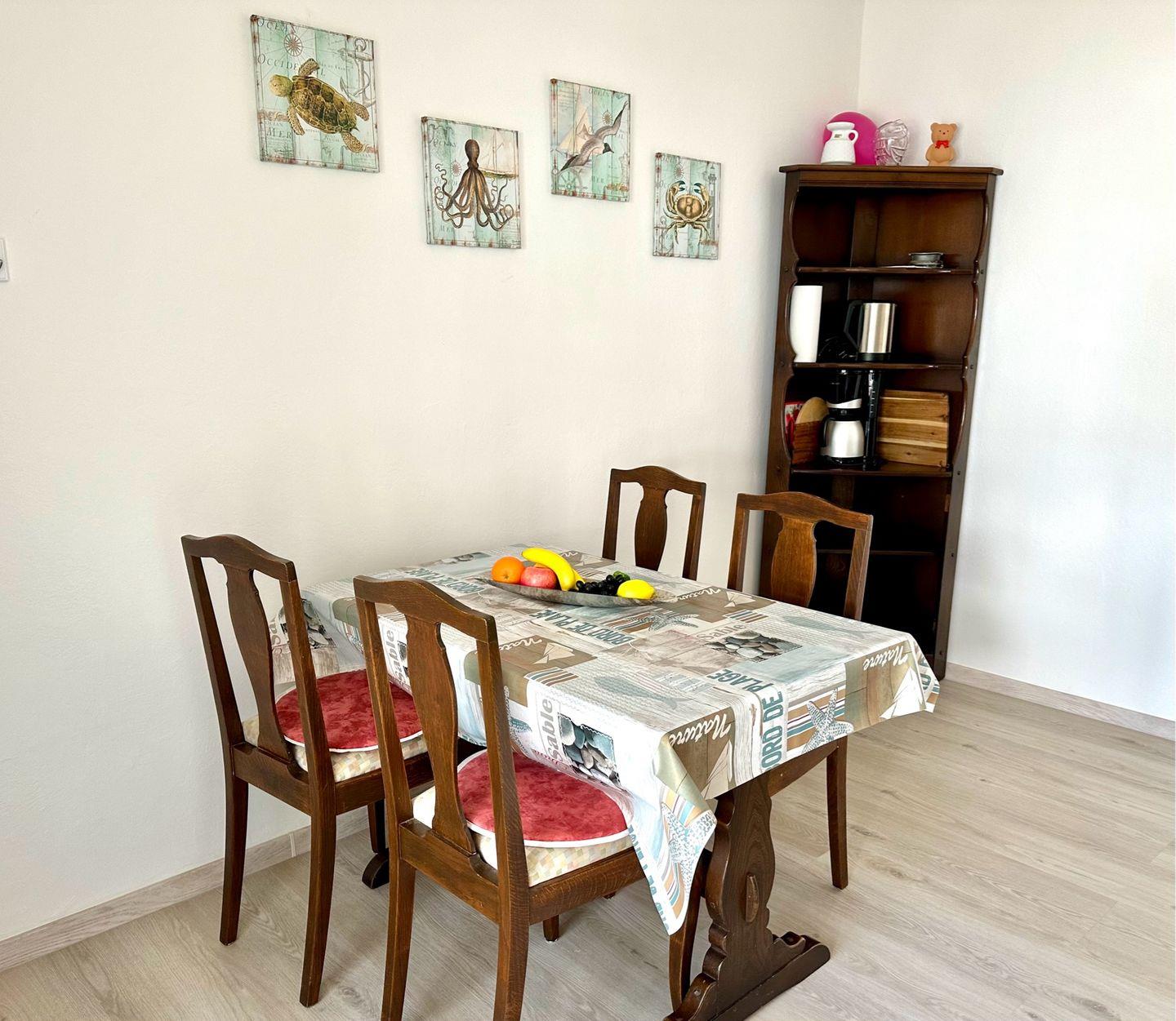Die Wohnung verfügt über eine Wohnküche mit einer Essecke und einer Küchenzeile mit 2-Plattenherd, Kühlschrank, Wasserkocher, Toaster, Mini-Backofen und Kaffeemaschine. Die sonnige Terrasse zur geschützten Südseite ist vom Schlafzimmer aus begehbar. Außerdem steht Ihnen im großzügigen Schlafzimmer ein Doppelbett (2 x 90x200 cm) und ein Kleiderschrank zur Verfügung. Ein Duschbad mit Fenster rundet die Wohnung ab. Zur Wohnung gehört ein PKW-Stellplatz. Der Strand ist zu Fuß nach ca. 150 m in Höhe der Seebrücke zu erreichen. Somit ist die Lage einfach ideal. Möchten Sie mit der Familie oder mit Freunden gemeinsam verreisen? Idealerweise vermieten wir auch die Wohnung 5060 für 4 Personen direkt nebenan - Jetzt fehlen nur noch Sie!