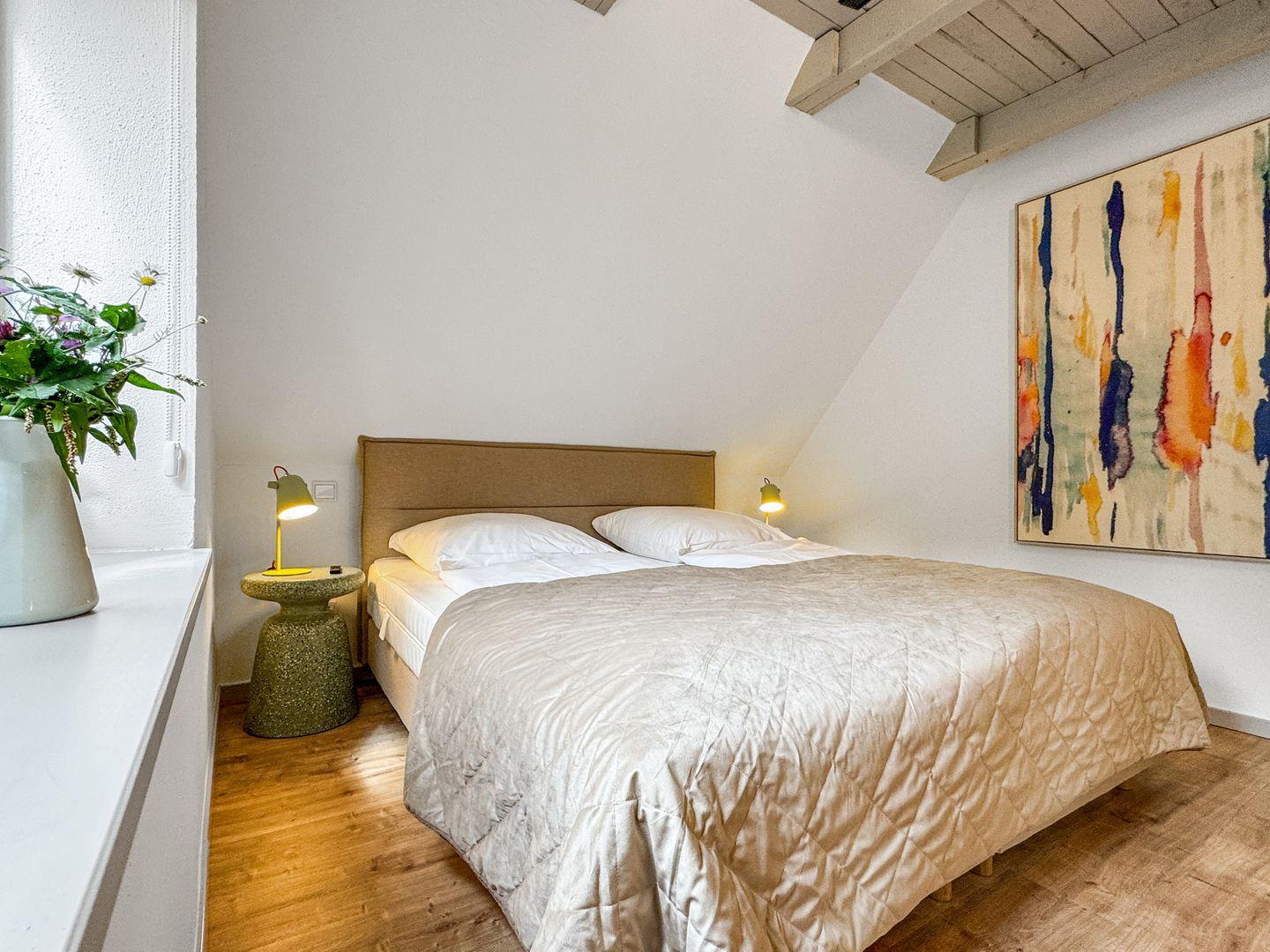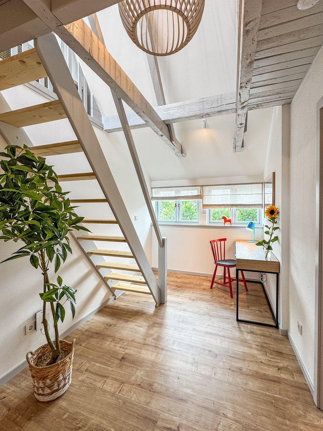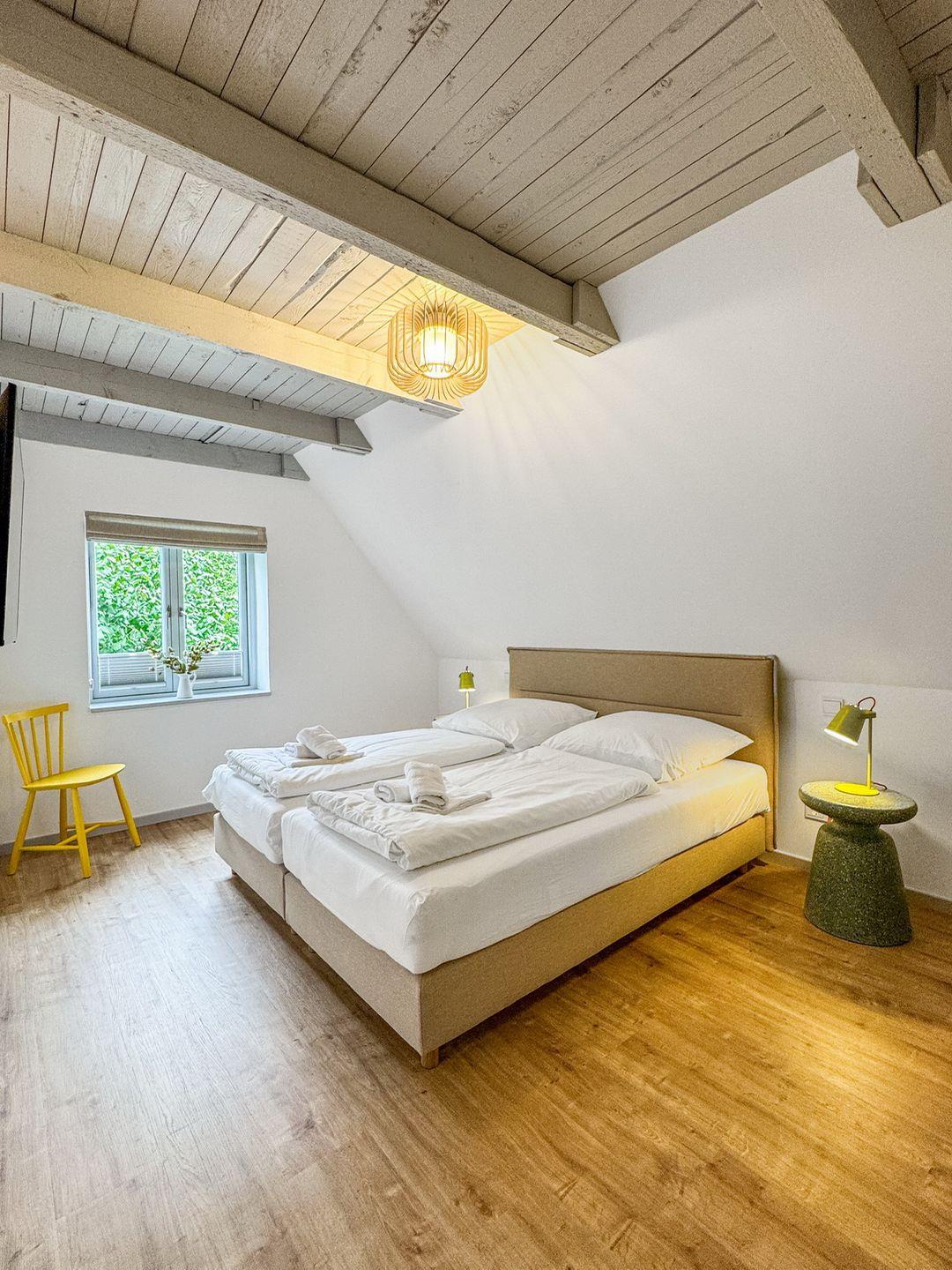 Die Ferienwohnung verfügt über insgesamt drei gemütliche Schlafzimmer ( ein SZ im Erdgeschoß, 2 SZ im 1. OG) , die mit liebevollen Details eingerichtet sind, um eine behagliche Atmosphäre zu schaffen. Außerdem gibt es einen Spitzboden, der über eine Raumspartreppe erreicht wird. Hier gibt es 2 Matratzenbetten zum Schlafen für größere Kinder und eine Chillecke mit Sitzsäcken.