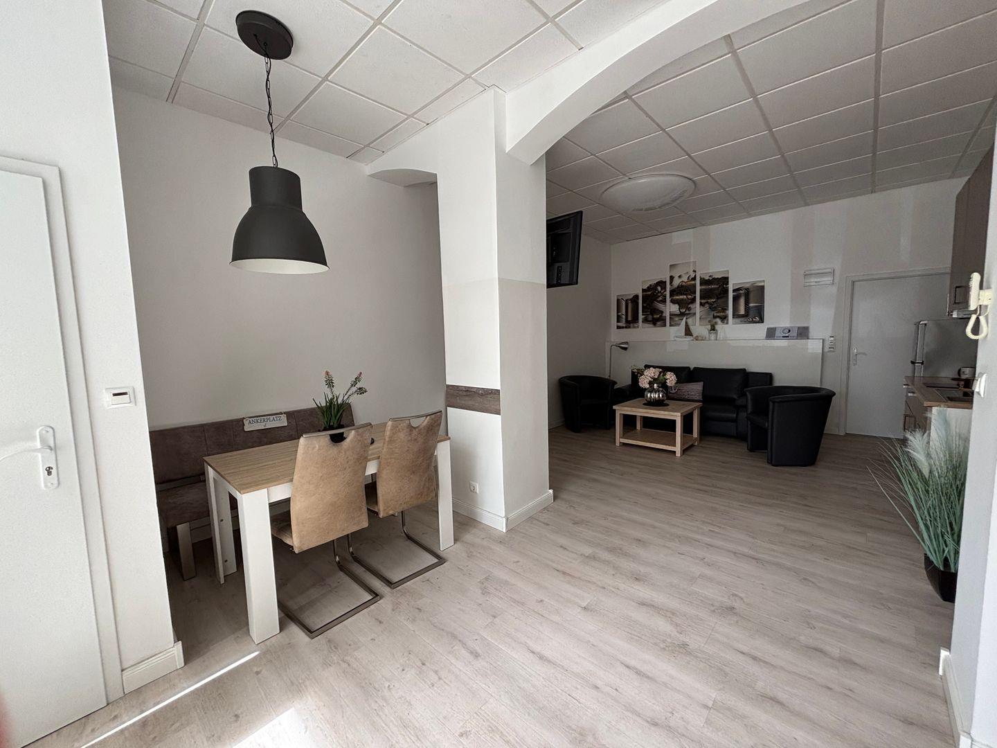 Gemütlicher Wohn- Essbereich. Integrierte voll ausgestattete Küche.