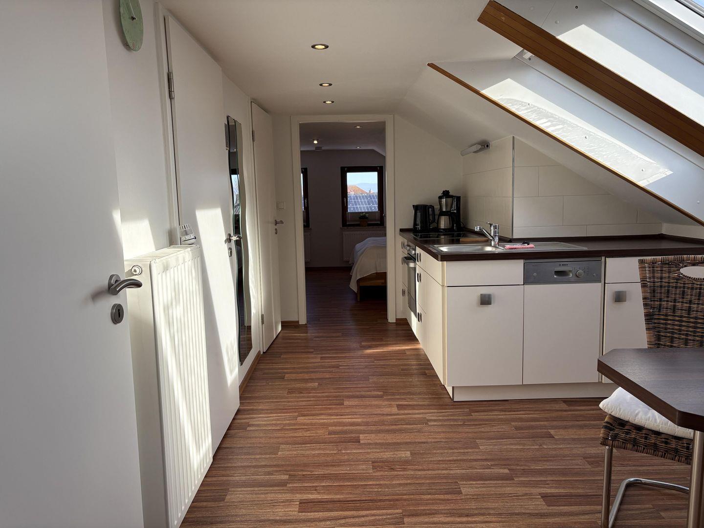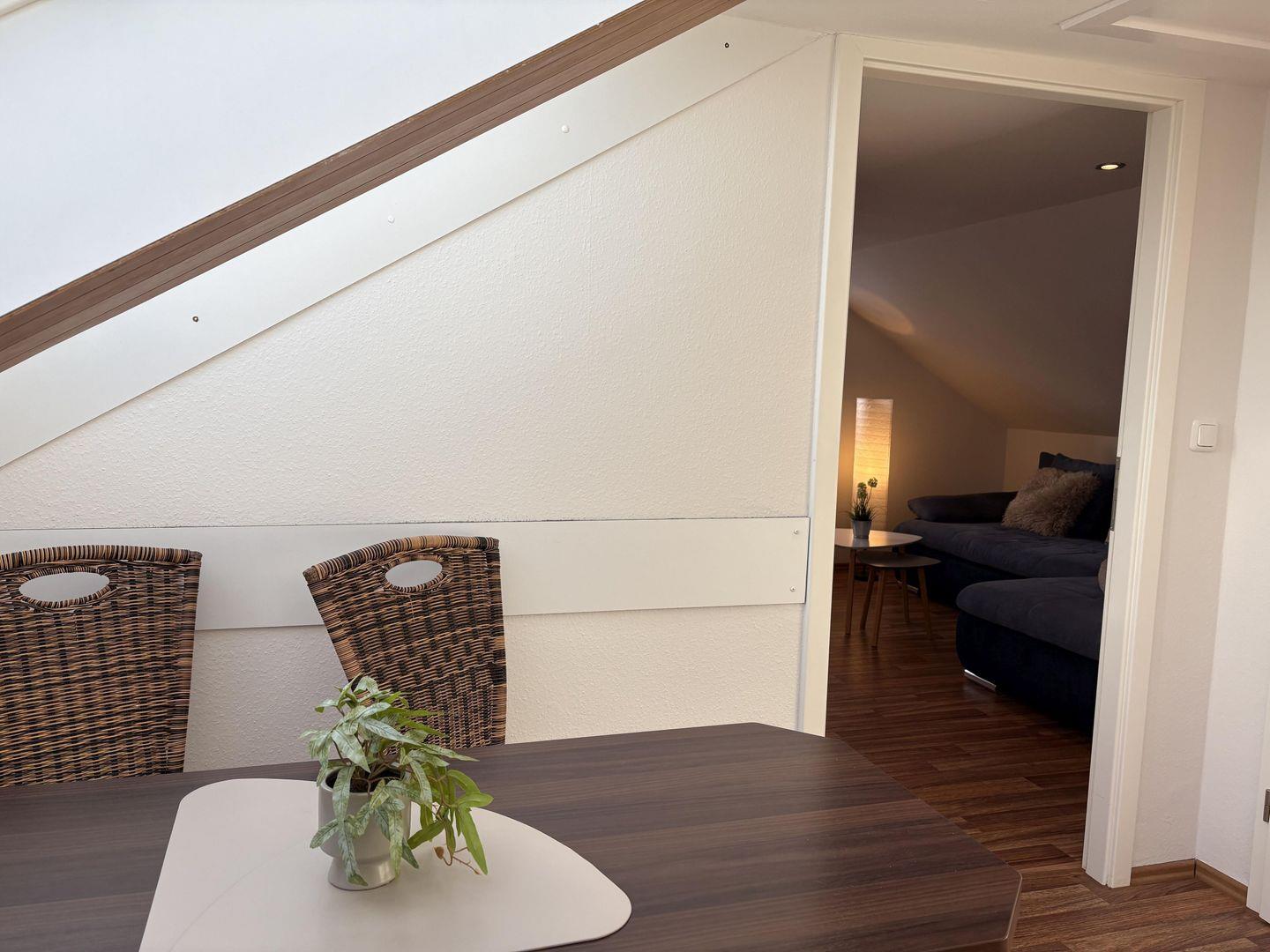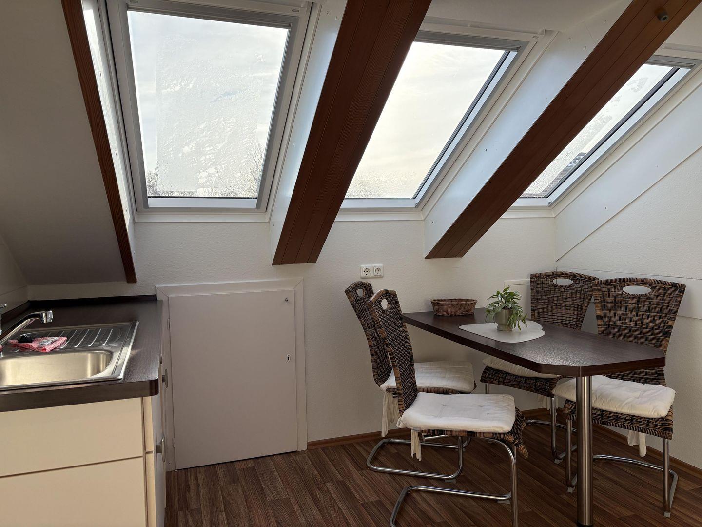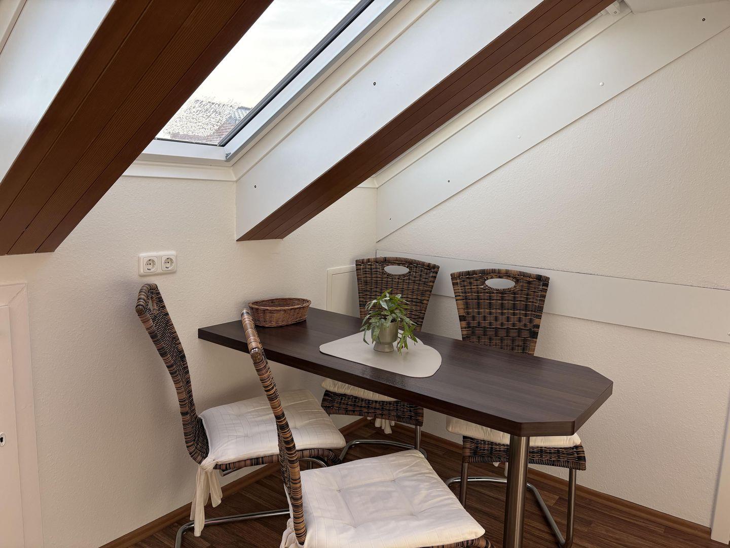 Modern eingerichtete helle Dachgeschoss-Wohnung für zwei Personen in strandnaher Lage, lichte Raumhöhe 2m: