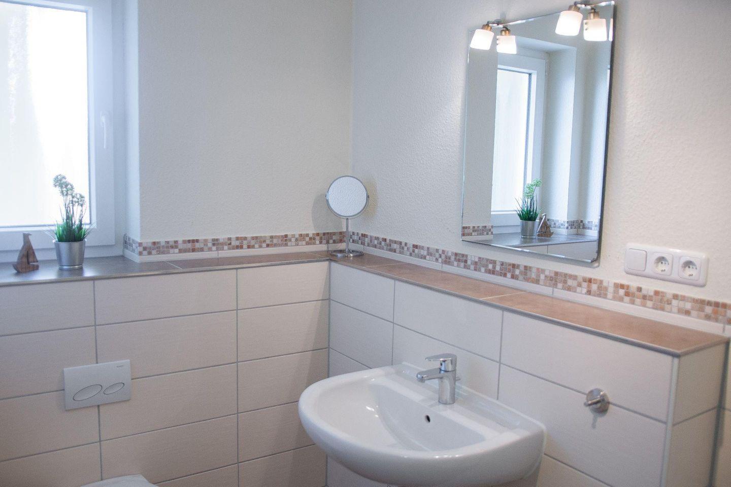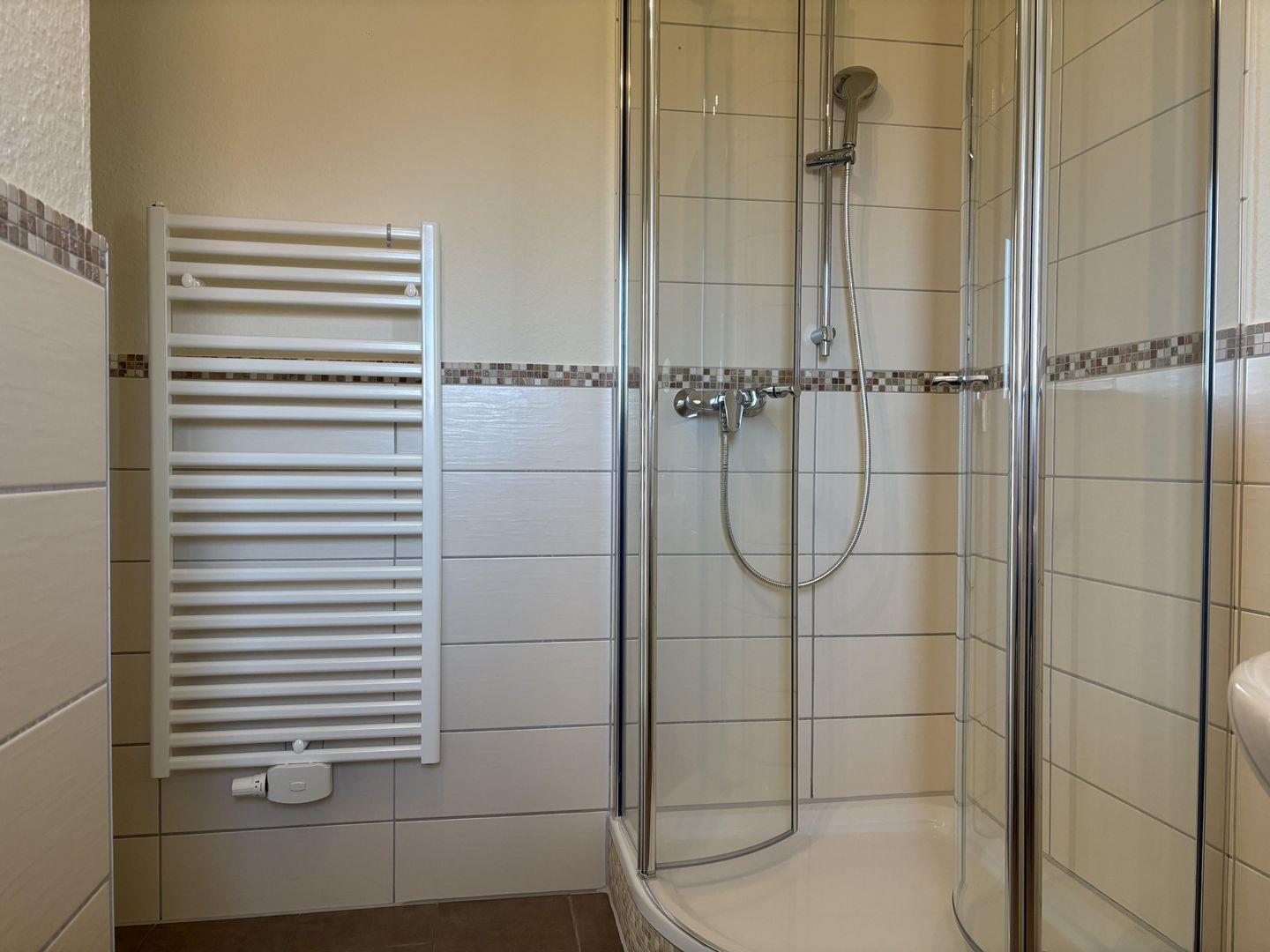 - tageslichthelles Badezimmer mit ebenerdiger Dusche und WC