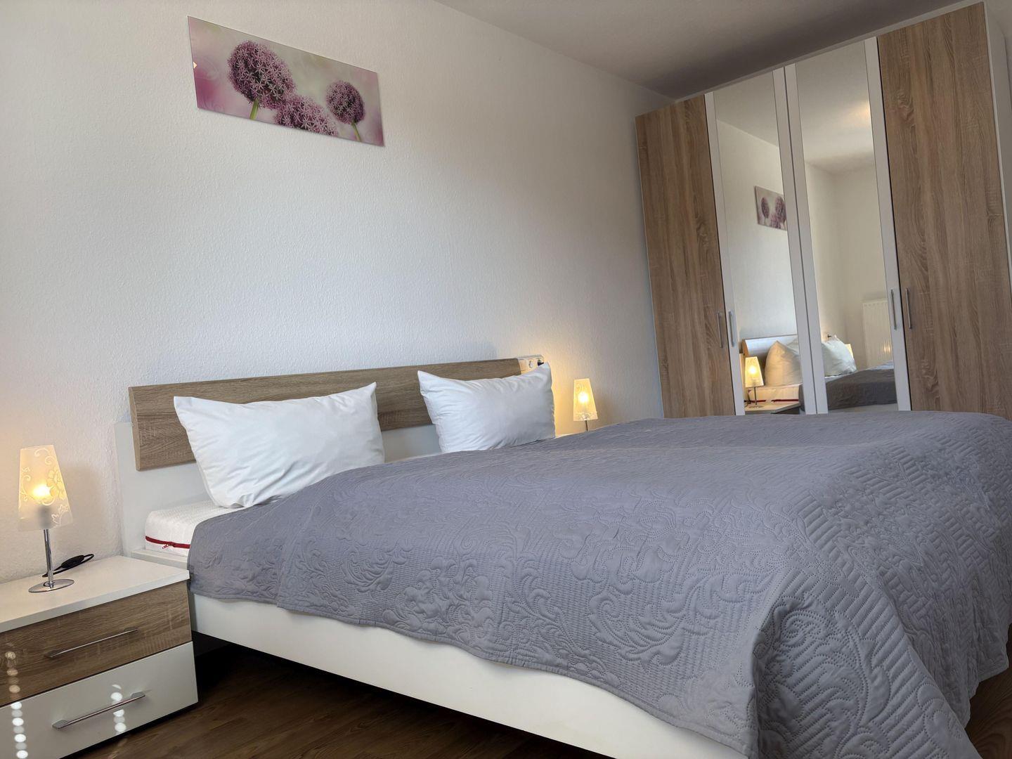 - zwei Schlafzimmer mit je einem Doppelbett und Kleiderschrank