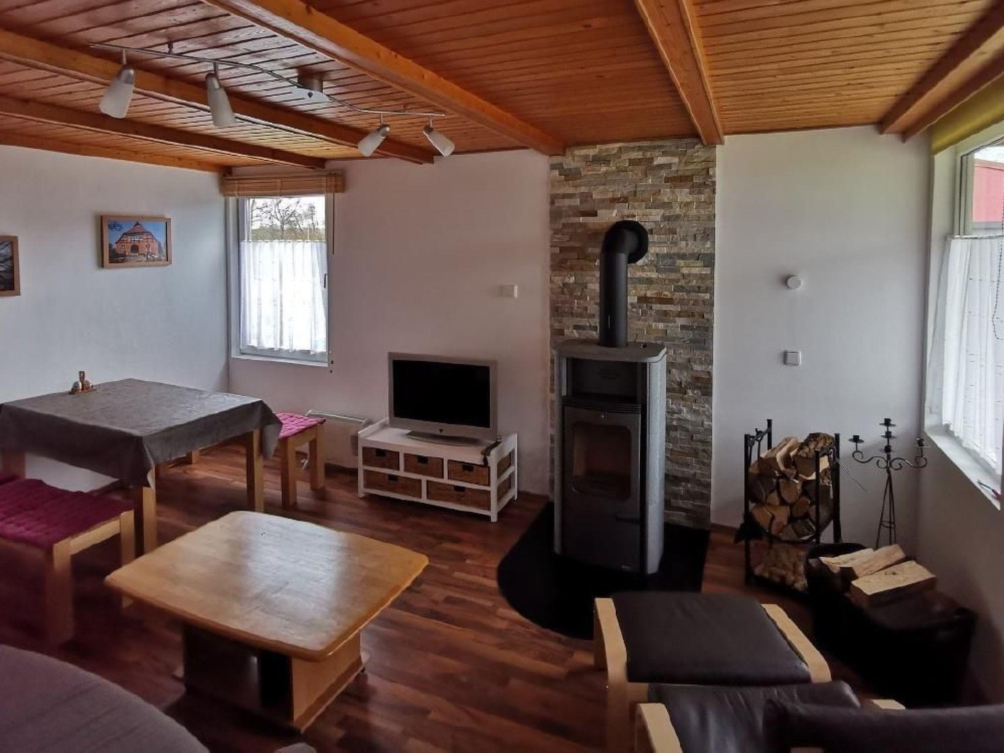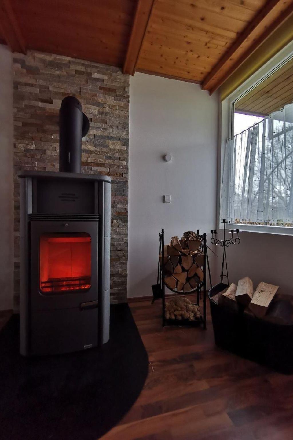The house can be heated in all rooms via electric radiators and can therefore be used all year round. There is also a wood-burning stove in the living room. This allows you to comfortably heat the entire rooms and enjoy the beautiful ambience of a wood fire.