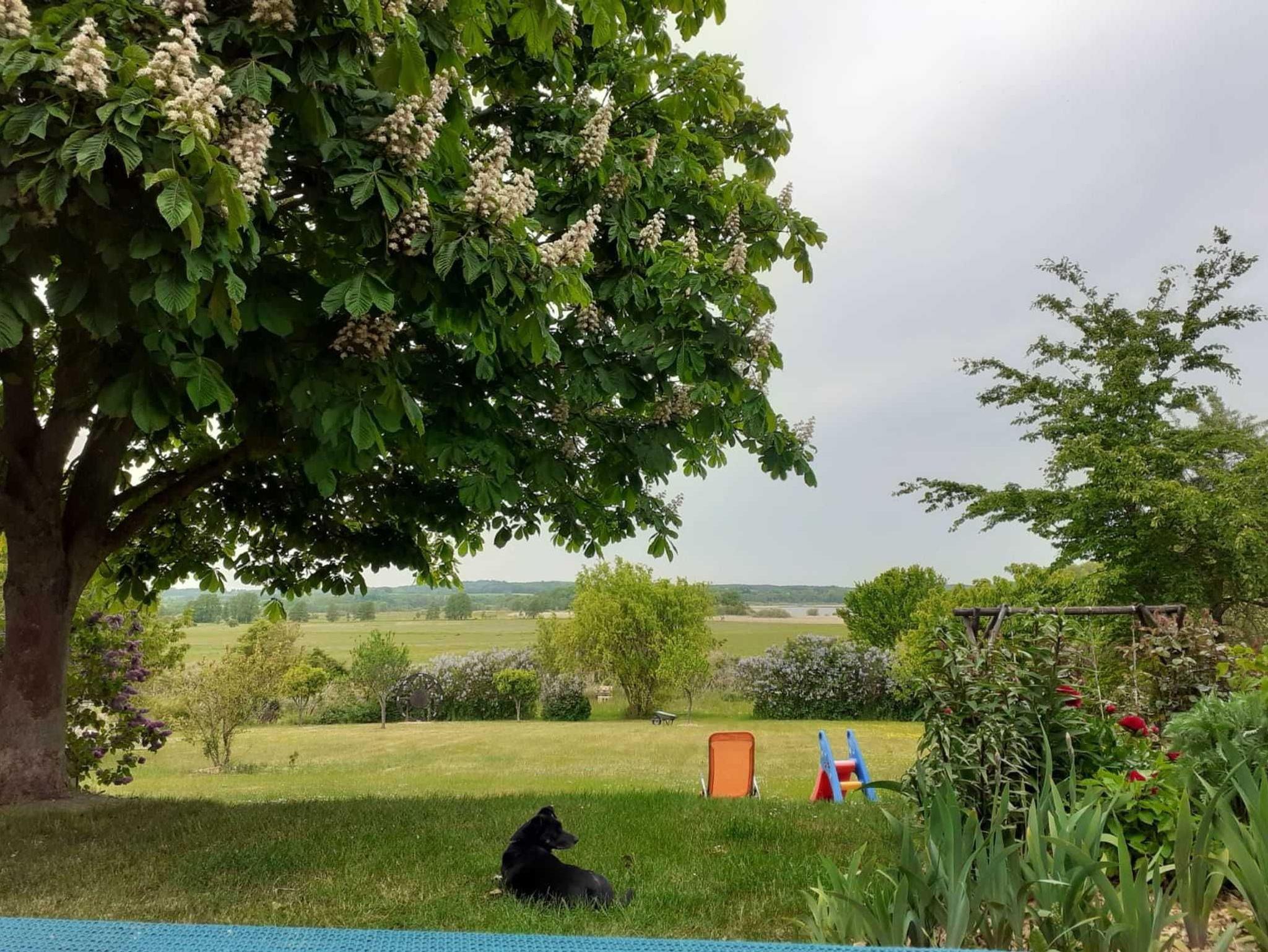 Auf dem weitläufigen Grundstück mit Blick zum See laden Sitzecken zum Entspannen ein. Spielgeräte für Kids sind ebenfalls vorhanden..