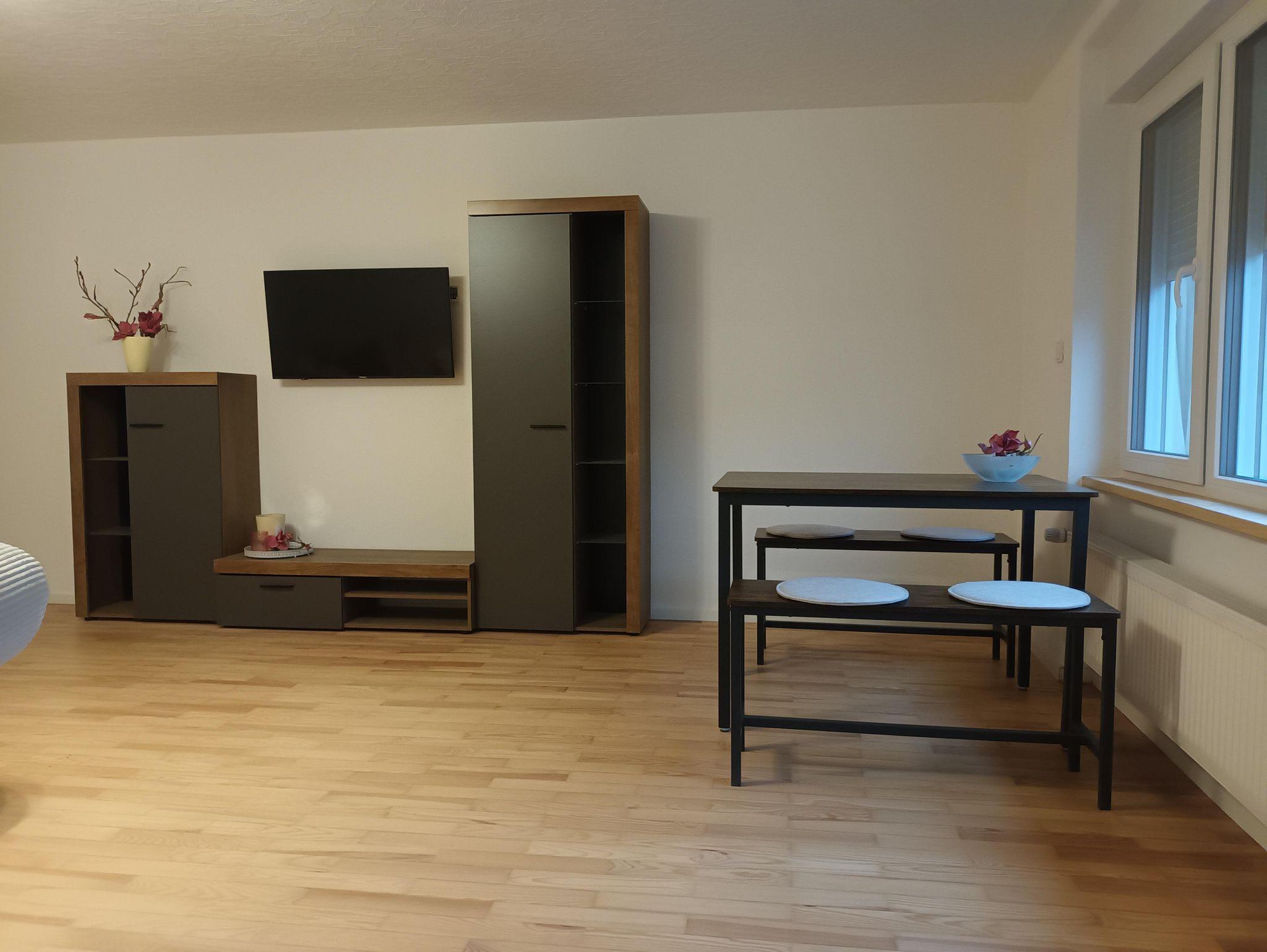 Im Wohnzimmer können Sie es sich auf unserer Couch gemütlich machen, gemeinsam fernsehen, spielen oder lesen.