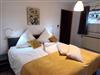 Im Schlafzimmer steht ein Doppelbett 180x200 cm. Getrennte Matratzen, 2 Bettdecken in Komfortgrößen 155x220, inkl. Bettwäsche laden zum Kuscheln ein. Zudem ist das Zimmer ausgestattet mit einem großen Kleiderschrank, 2 Sessel und einem Flachbild-TV. Auf dem Balkon können Sie an einem Tisch mit 2 Stühlen den Ausblick auf den Hochstein und die Burgengruppe Altdahn, die abends beleuchtet ist, genießen.