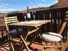Von der Küche haben Sie direkten Zugang zu unserer überdachten Terrasse mit einem großen Tisch, an dem alle Platz haben.