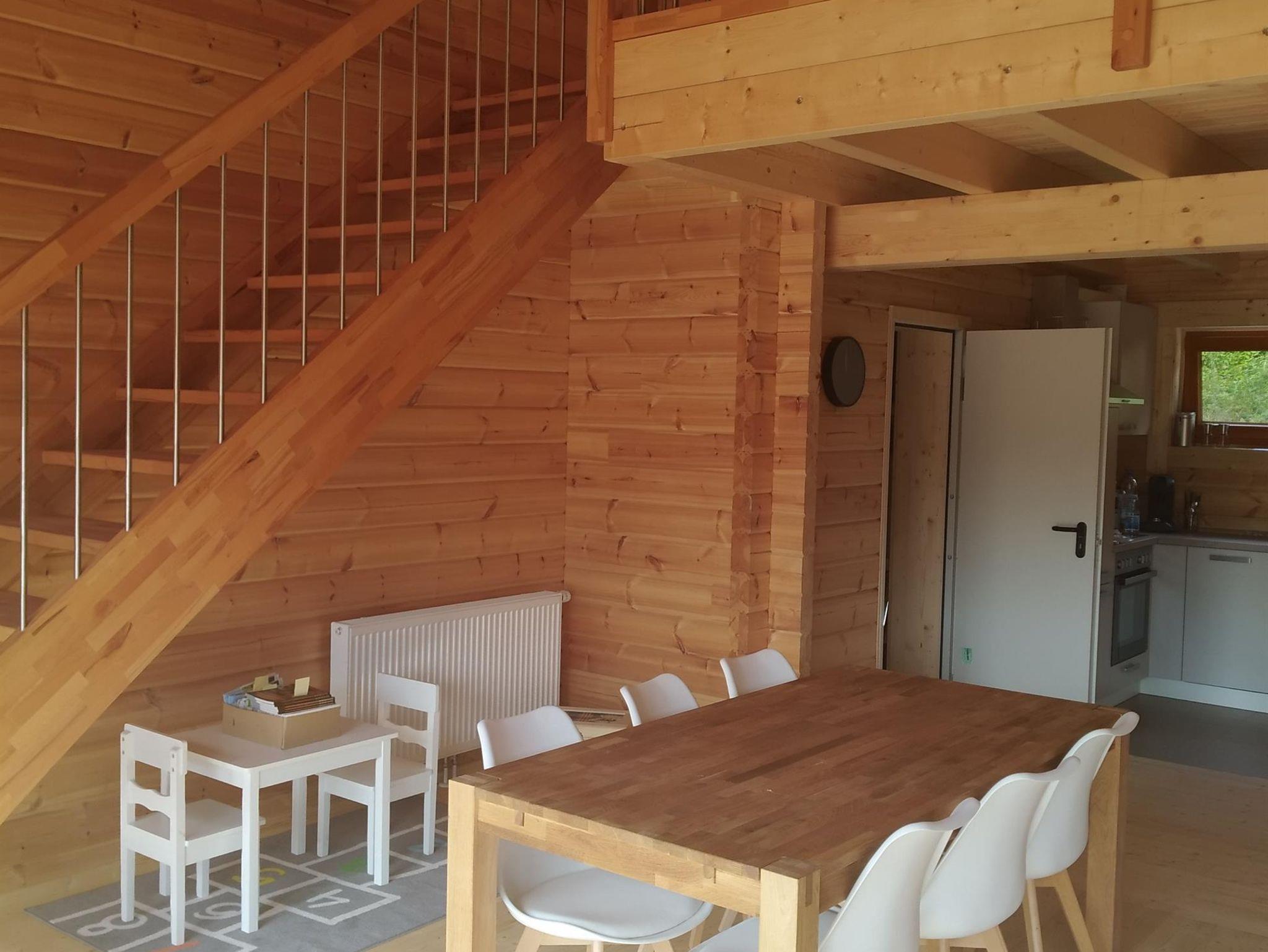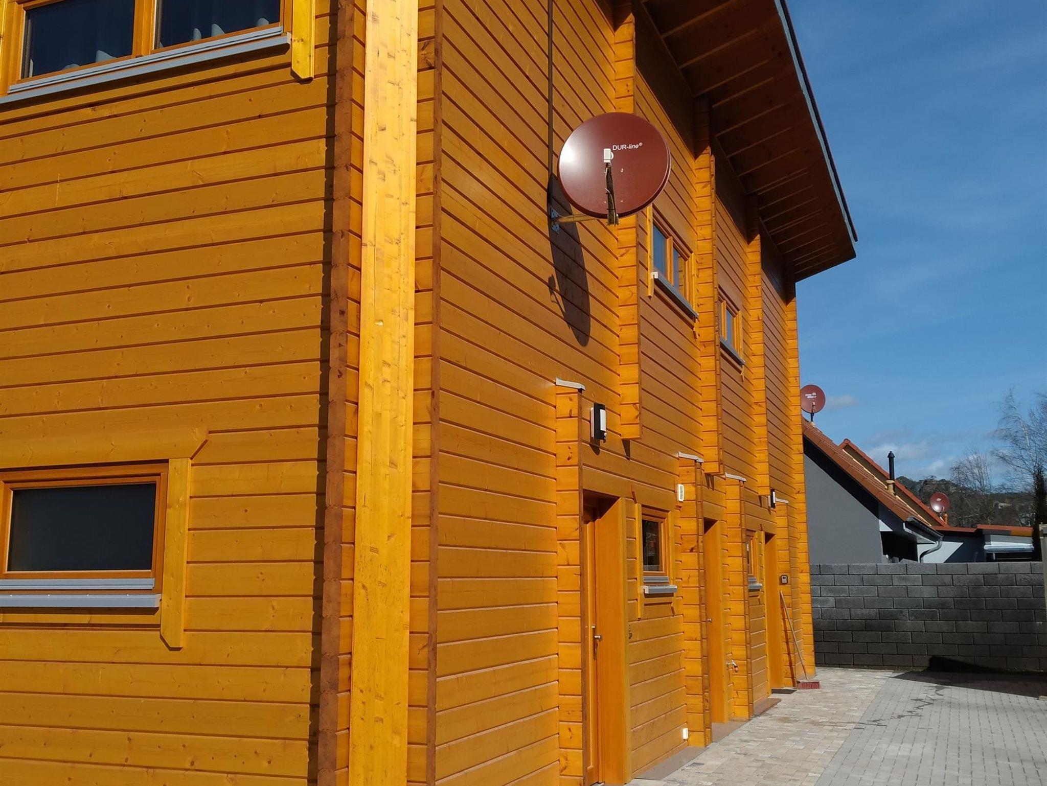 Doppelhaus in Holzblockbohlenbauweise mit 2 Wohnungen a 75 qm. Separate Eingänge, klimaneutral und ökologisch.