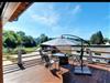 mit TV, großer Fensterfront und Ausgang zur möblierten Terrasse, Bad mit Dusche und WC sowie zusätzliches WC im Obergeschoss.