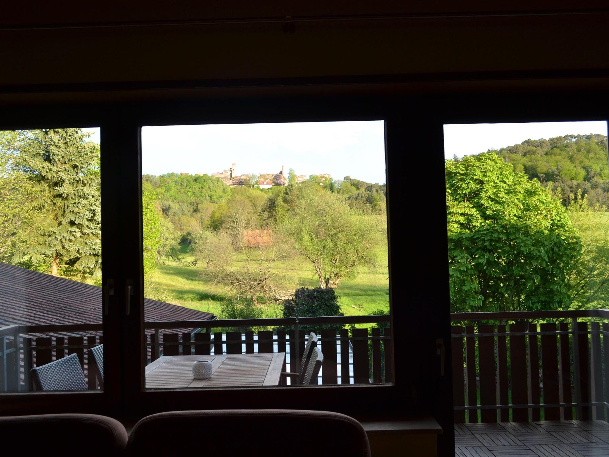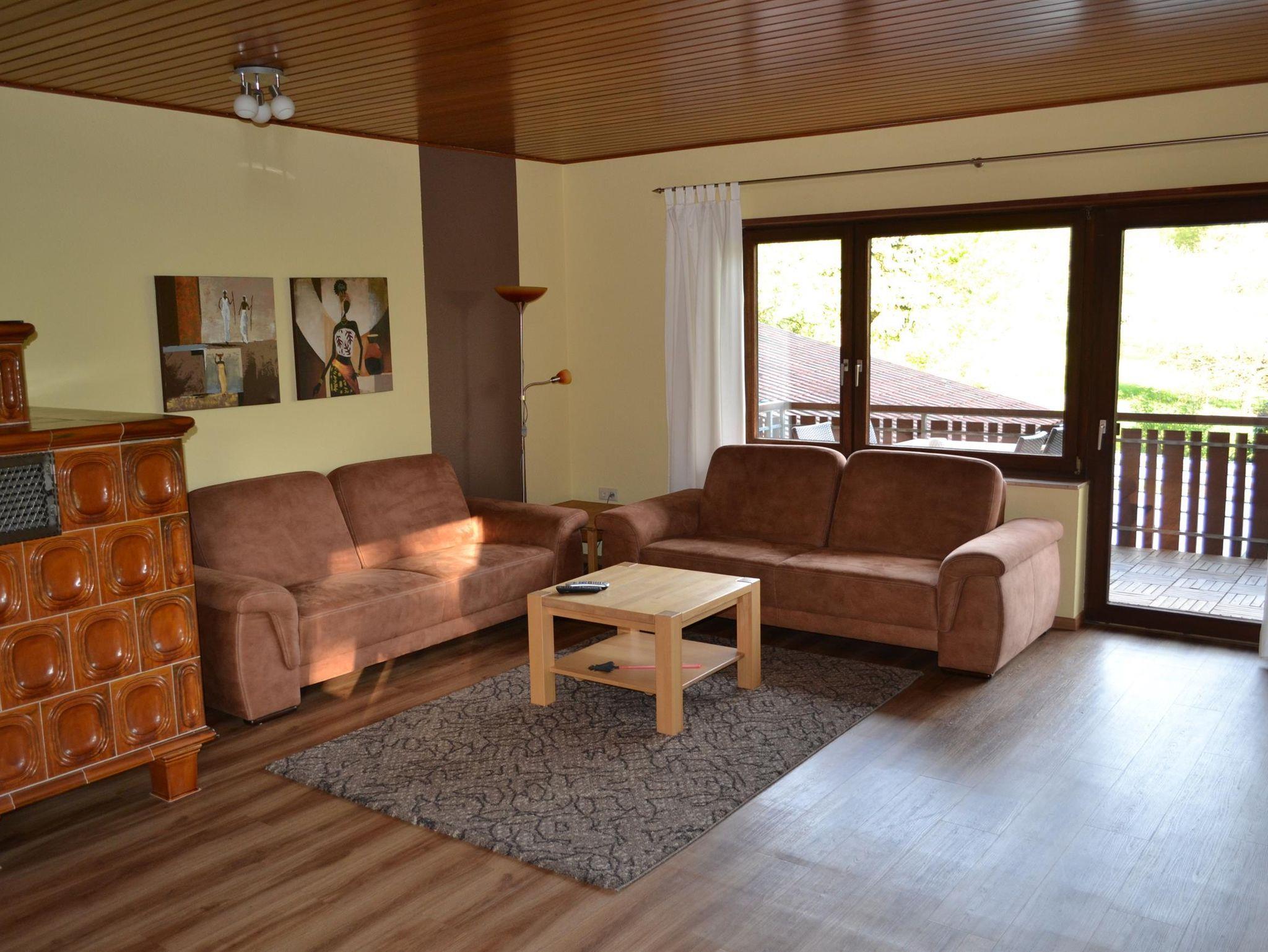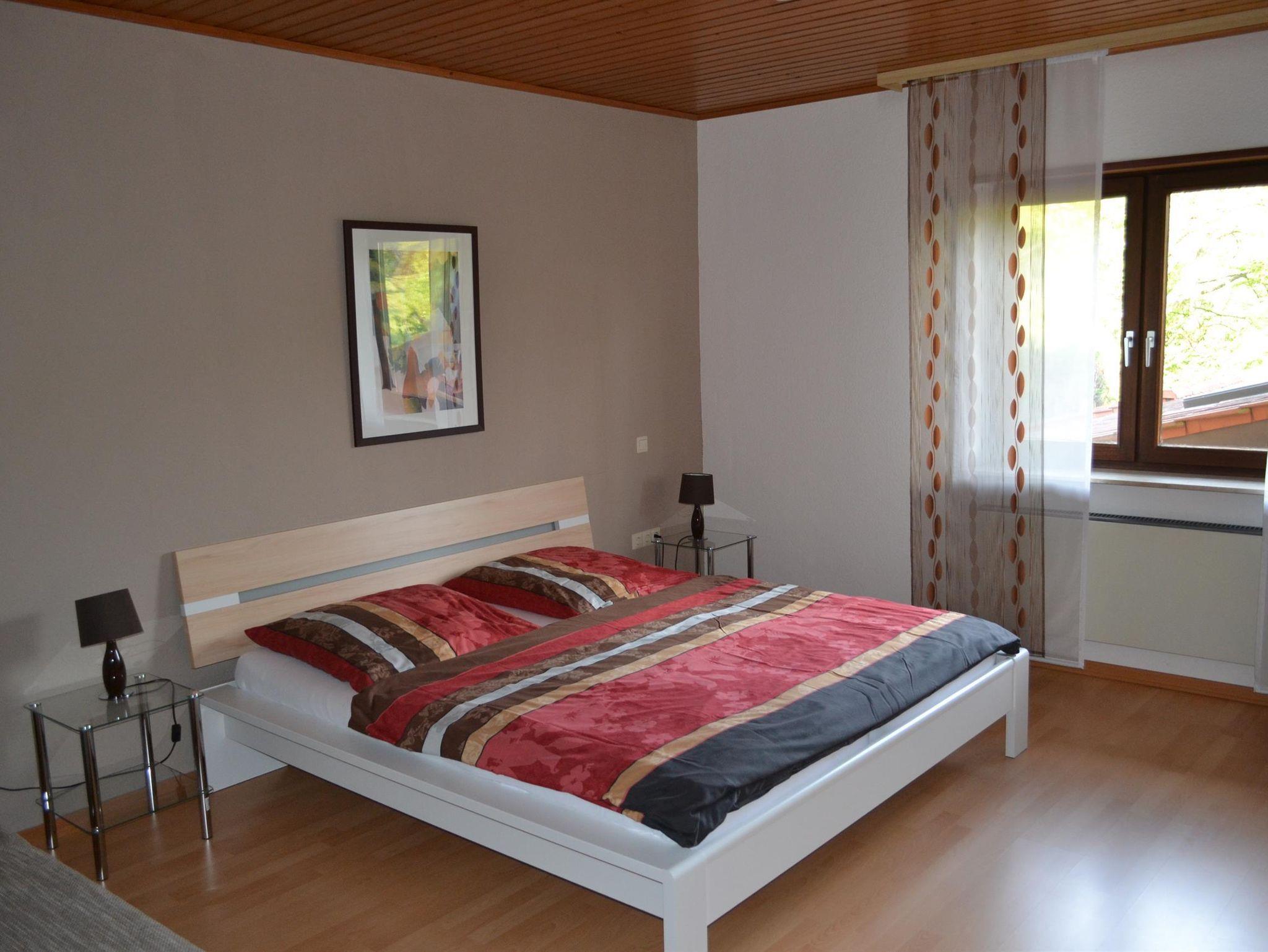 Großzügige, helle Komfort-Ferienwohnung mit ebenerdigem Eingang in ruhiger Lage, freier traumhafter Blick zur Burg Altdahn. 120 qm, 3 große separate Schlafzimmer jeweils mit Doppelbett,180 x 200 cm mit offenem Fußteil, im Januar 2019 renoviertes Bad mit großer Dusche und WC, sep. WC, große, komplett eingerichtete und ausgestattete Küche, großes Ess-Wohnzimmer, Kachelofen, Süd-Balkon, Sat-TV, Stereo-Anlage, W-Lan-Anschluß, familiengerecht.