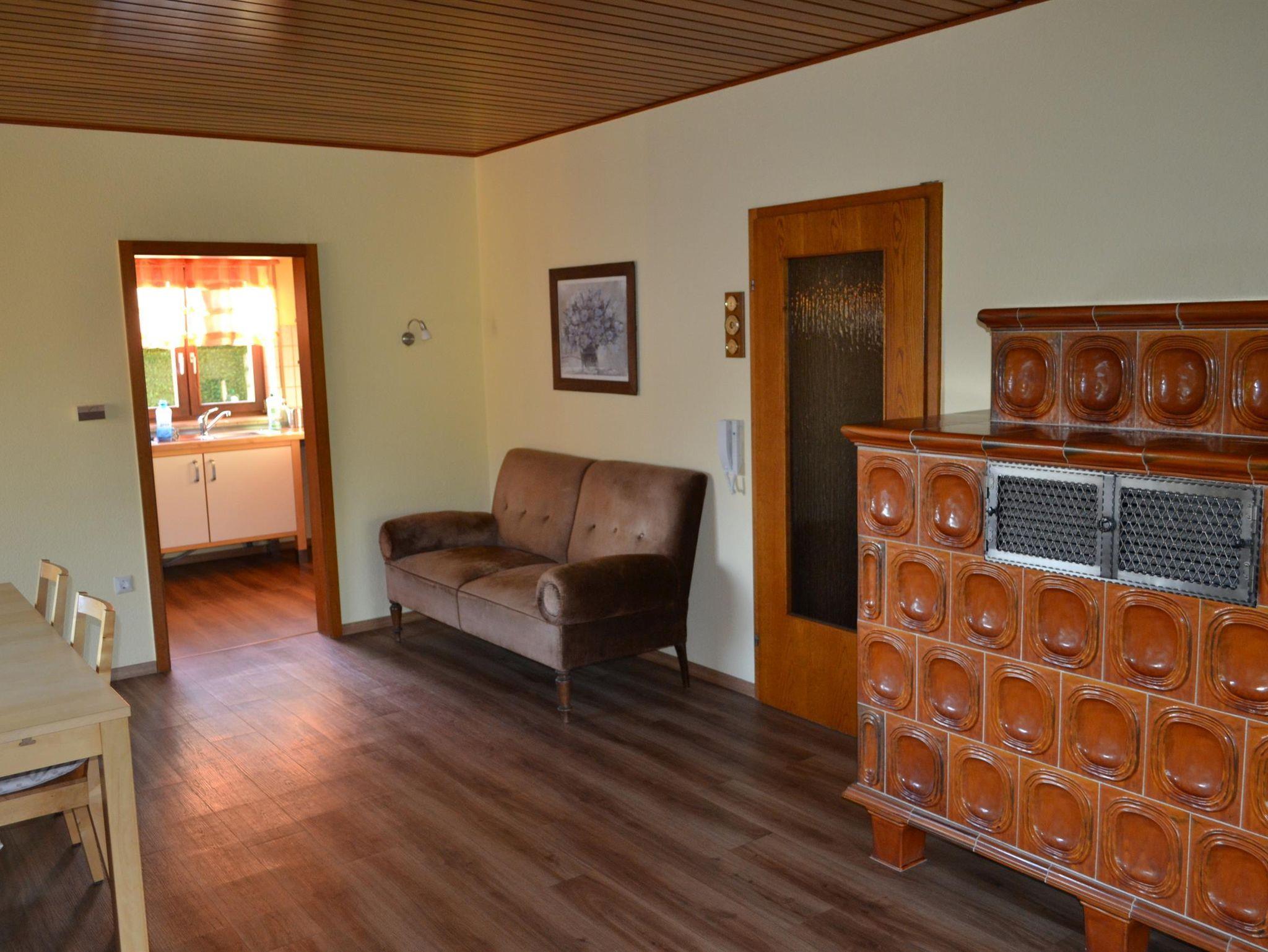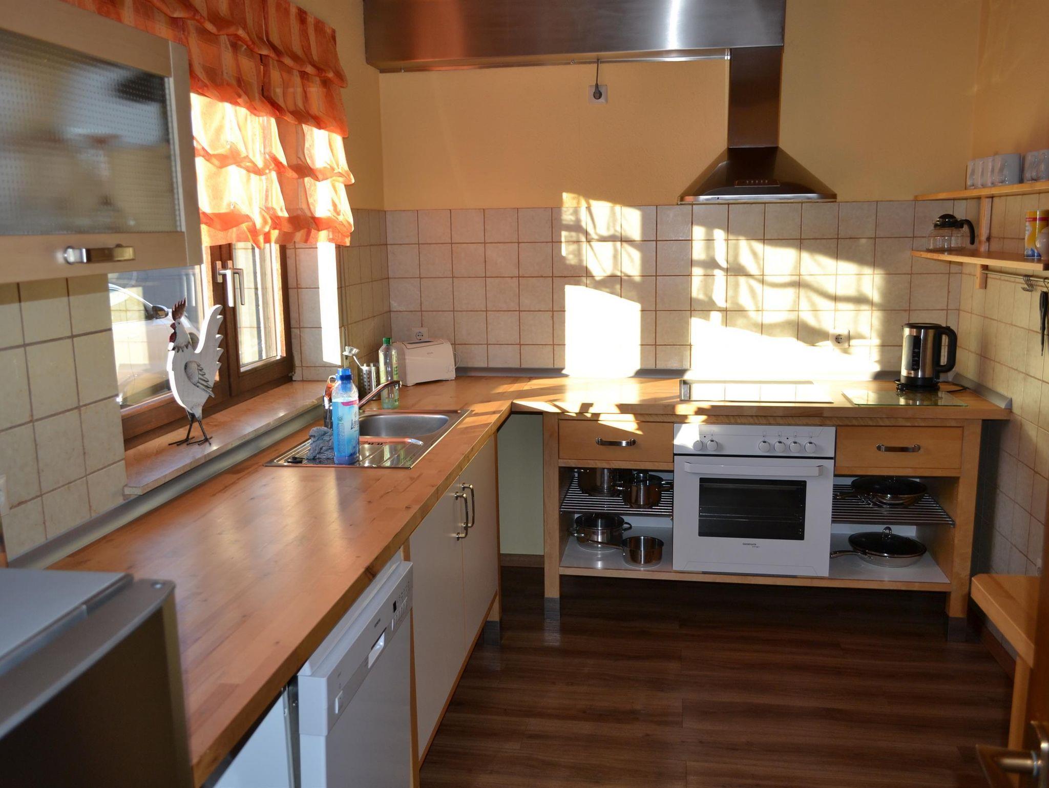 Großzügige, helle Komfort-Ferienwohnung mit ebenerdigem Eingang in ruhiger Lage, freier traumhafter Blick zur Burg Altdahn. 120 qm, 3 große separate Schlafzimmer jeweils mit Doppelbett,180 x 200 cm mit offenem Fußteil, im Januar 2019 renoviertes Bad mit großer Dusche und WC, sep. WC, große, komplett eingerichtete und ausgestattete Küche, großes Ess-Wohnzimmer, Kachelofen, Süd-Balkon, Sat-TV, W-Lan-Anschluß, familiengerecht.