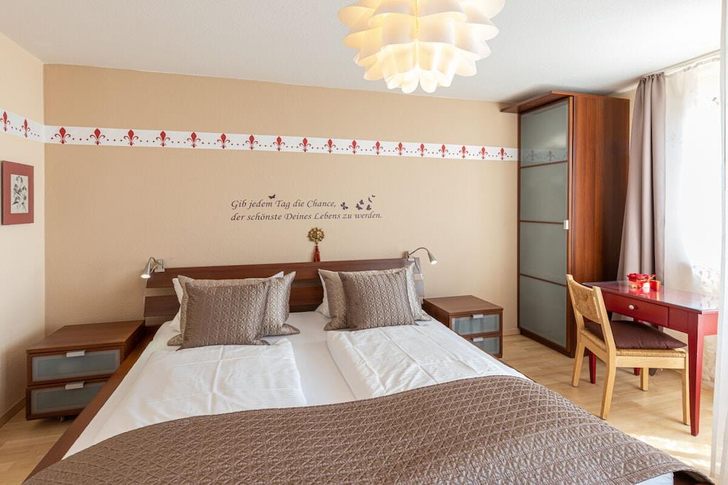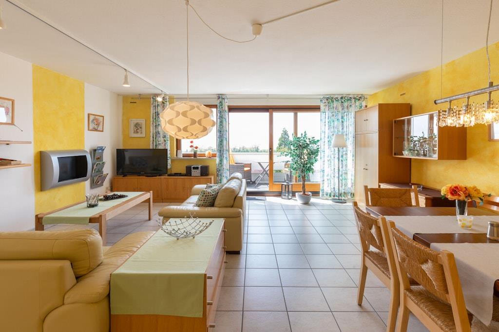 Den 4-værelses ferielejlighed på 100 kvadratmeter ligger på en bakke over Meersburg og tilbyder en meget rolig beliggenhed med uhindret udsigt over søen og de schweiziske bjerge. En barneseng er tilgængelig gratis efter anmodning, gulvvarme, 3 rummelige soveværelser, en stor stue med pejs og spiseplads, fladskærms-tv, dvd-afspiller, cd-afspiller, spil, bøger og kort. Wi-Fi er tilgængelig. Et fuldt udstyret køkken inkluderer keramisk kogeplade, ovn, køleskab med frostboks, brødrister, mikrobølgeovn, kaffe- og espressomaskine samt opvaskemaskine. Der er te, kaffe og krydderier. Der er også et brusebad med separat toilet.