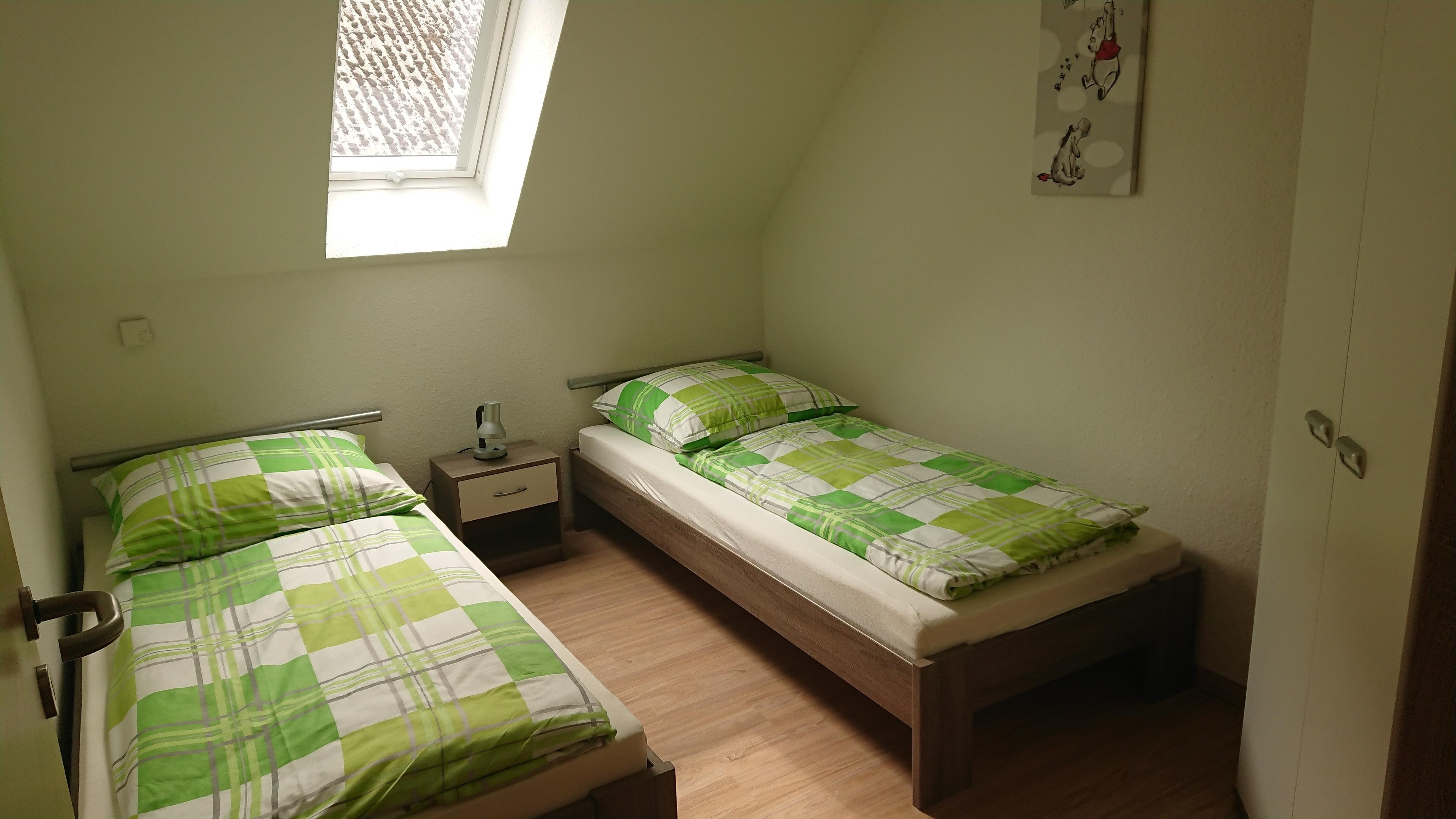Die Wohnung ( links ) beteht aus ein Schlafzimmer mit Ehebett, ein kleines Schlafzimmer mit Einzelbetten