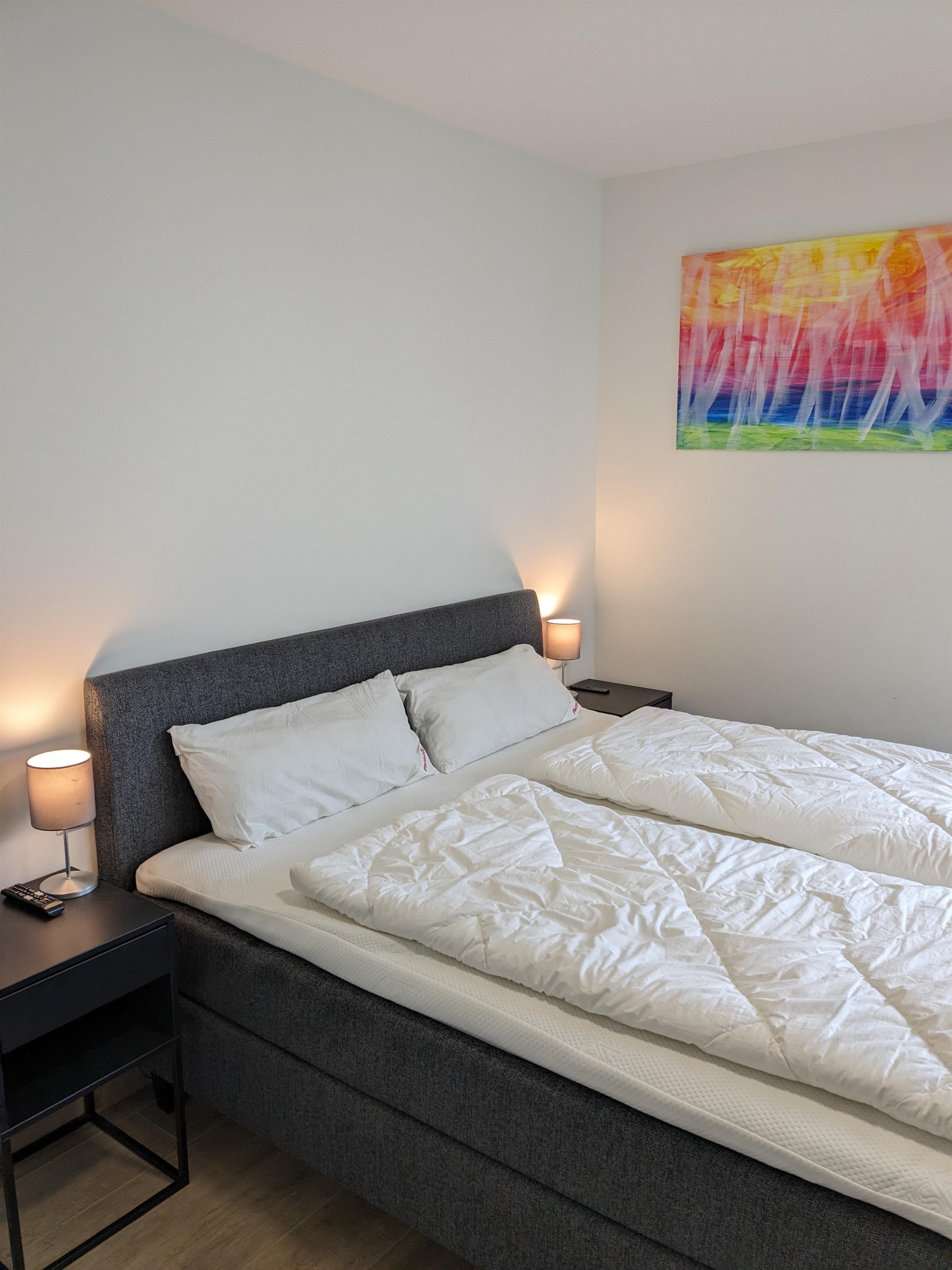 Die zwei Schlafzimmer sind mit luxuriösen 1,80 m breiten Boxspringbetten der Premiummarke Jensen ausgestattet, dazu extra große Bettdecken (155 x 220 cm) für höchsten Schlafgenuss.