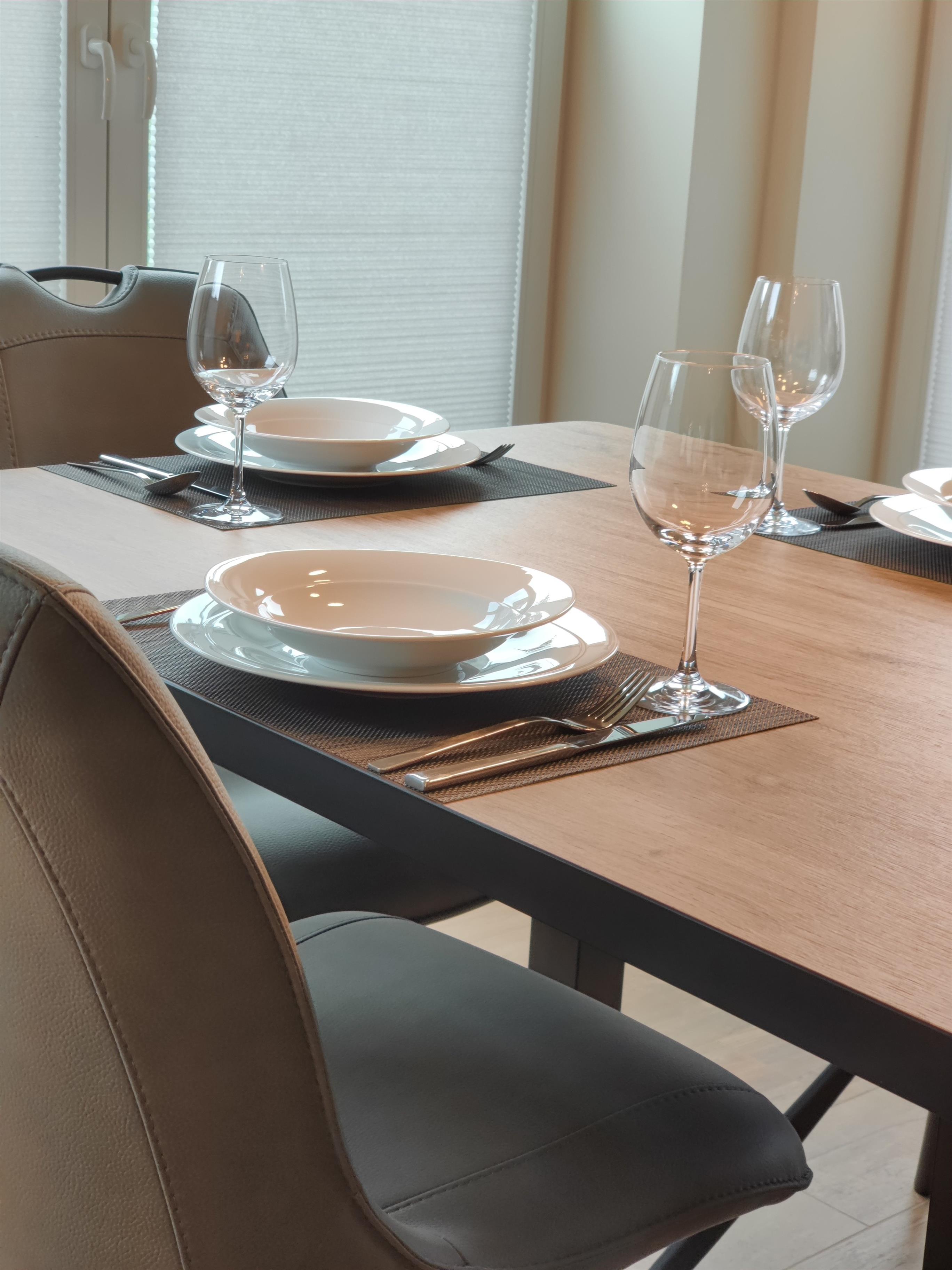 Heller, großzügiger Wohn- und Essbereich mit voll ausgestatteter Küche – hier finden Sie alles, was Sie für einen gelungenen Urlaub brauchen. Eine Sonos-Soundbox sorgt für die passende musikalische Untermalung.