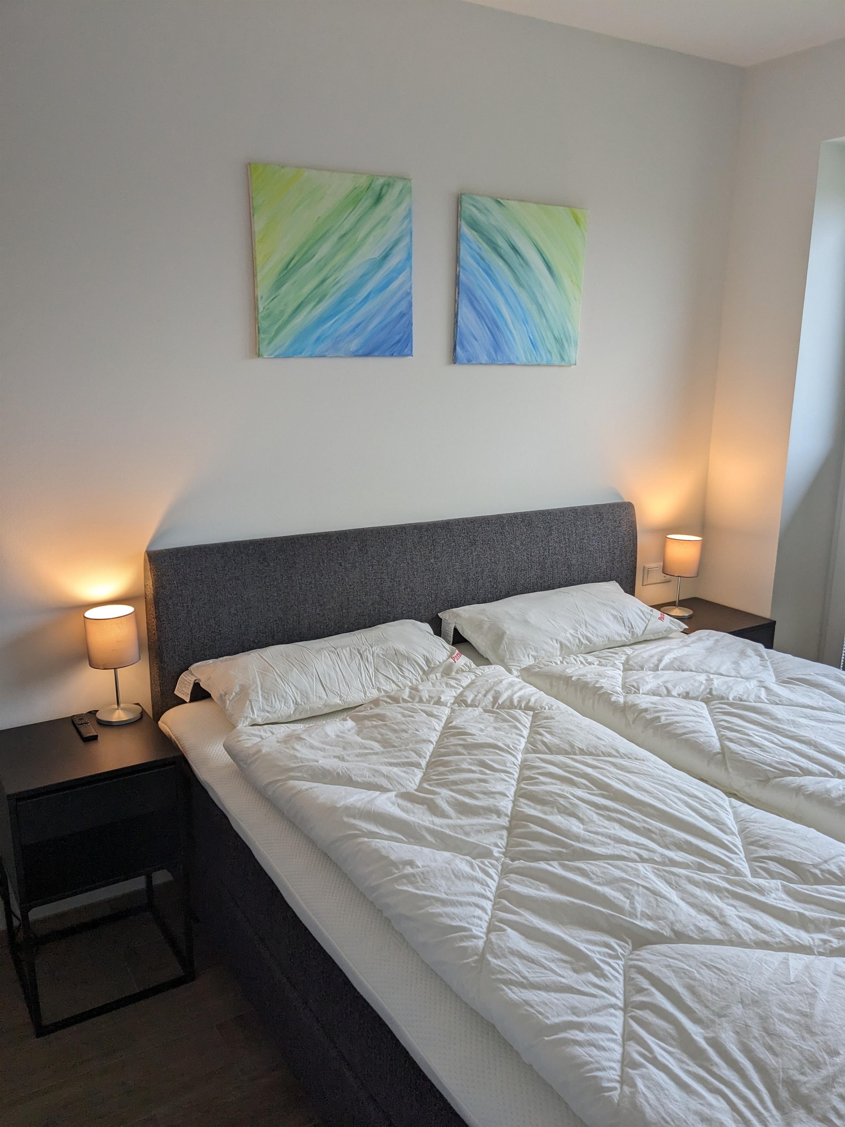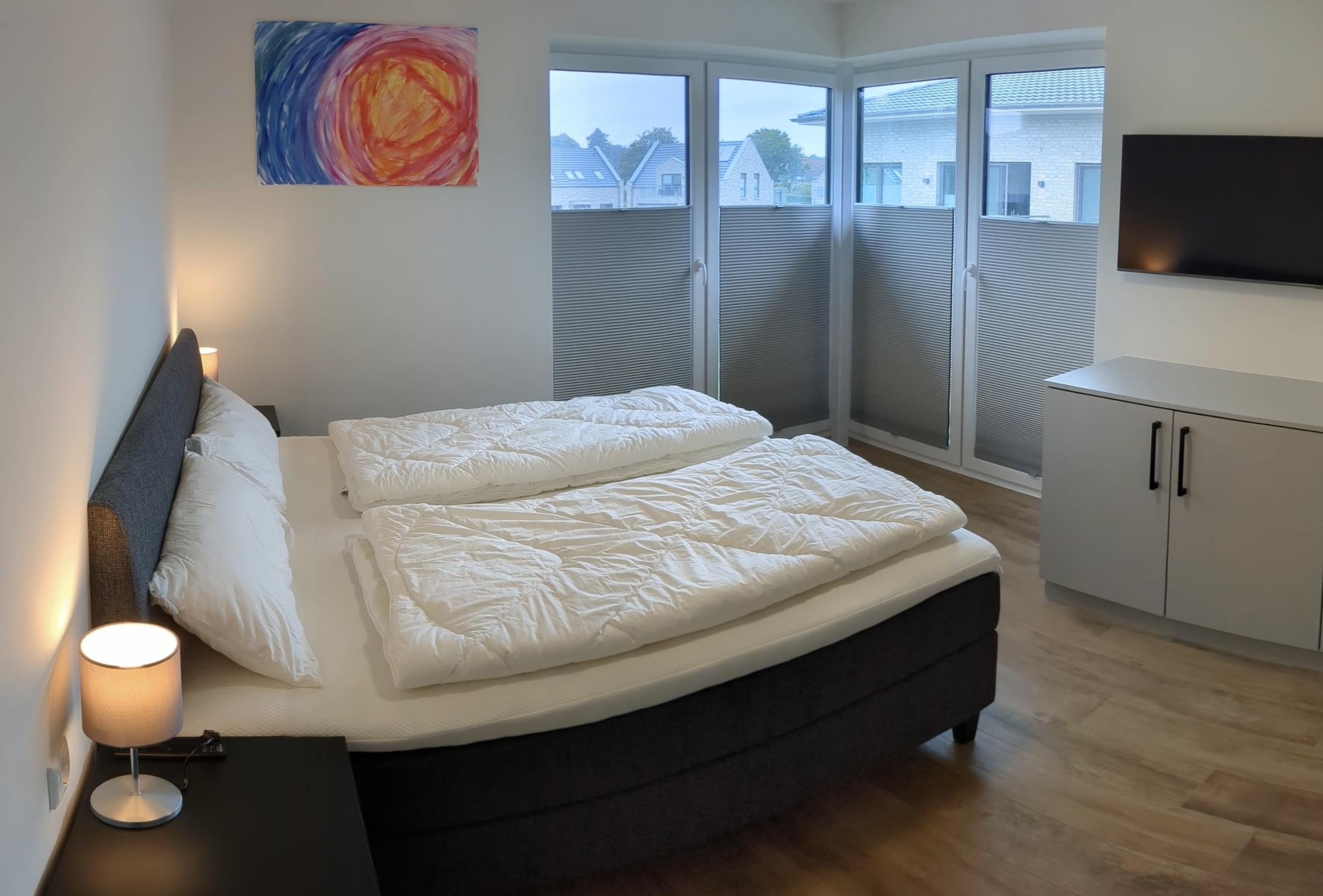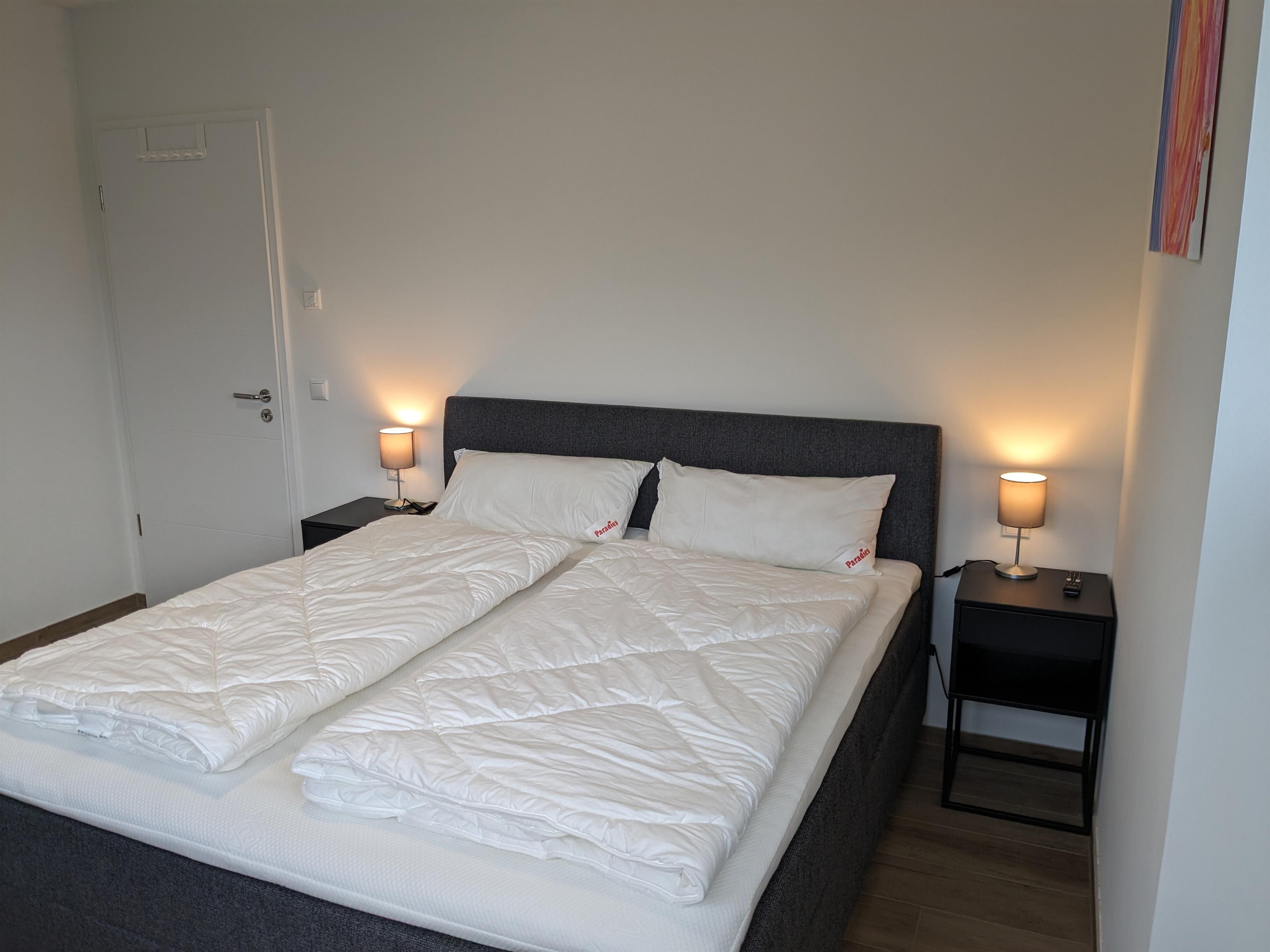 Zwei Schlafzimmer, ausgestattet mit luxuriösen, 1,80 m breiten Boxspringbetten der Marke Jensen und extra großen Bettdecken (155 x 220 cm), garantieren erholsame Nächte.