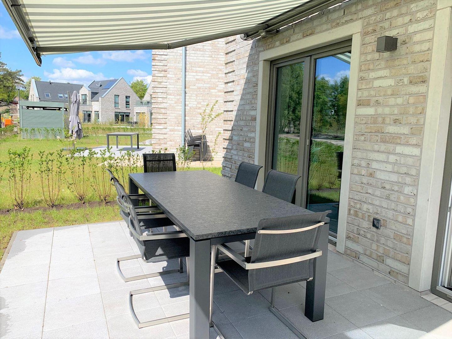 Ausstattung Außen: Sitzgarnitur mit Tisch, Markise, Grill, Liege für 2 Personen, PKW-Stellplatz, Tischtennisplatte im Gartenhaus