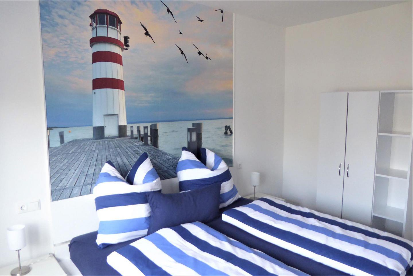 Schlafzimmer 2: Doppelbett (Maße: 180 x 200 cm), Nachttische, Leselampen, Kleiderschrank, Fernseher
