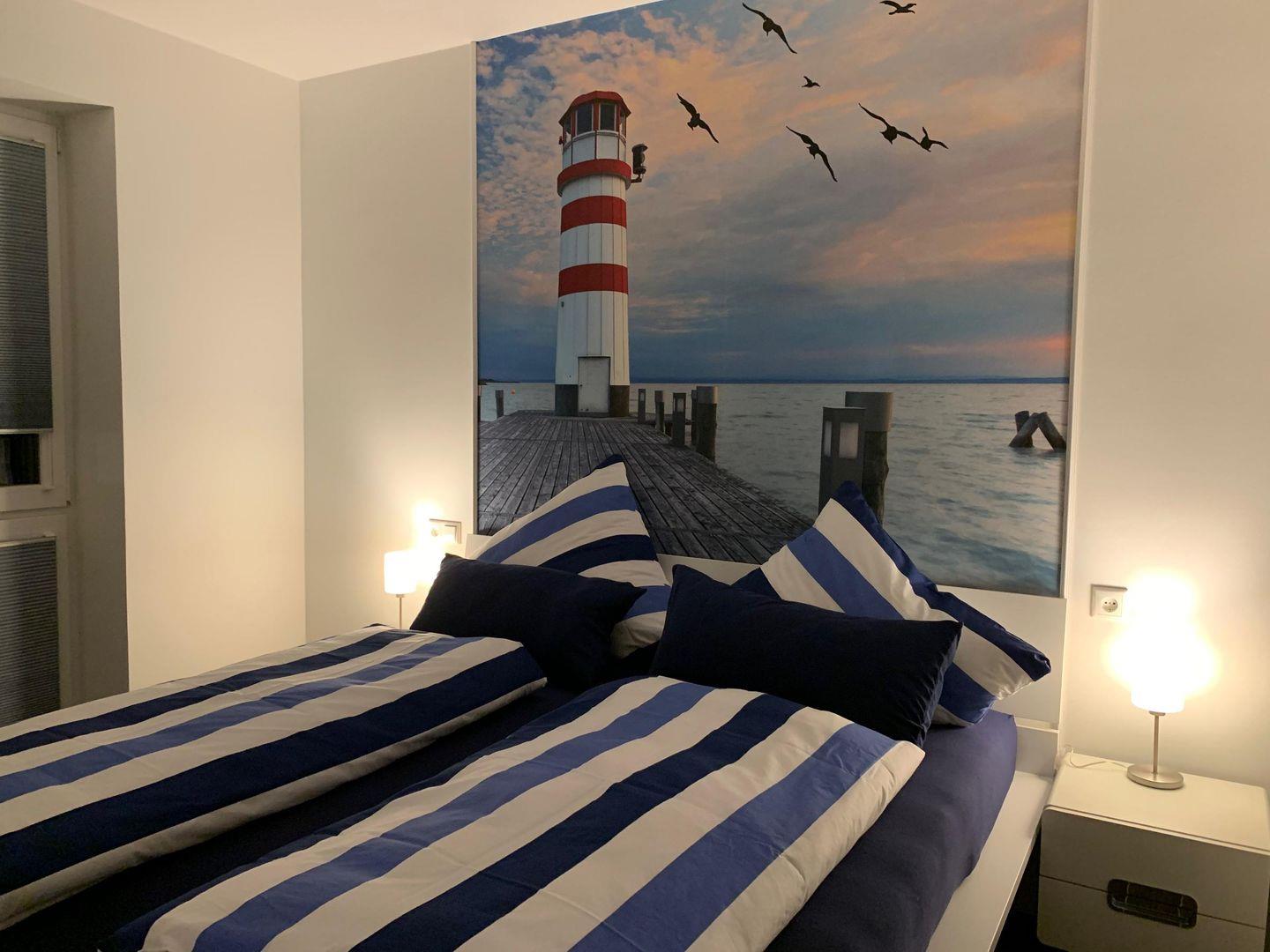 Schlafzimmer 1: Doppelbett (Maße: 180 x 200 cm), Nachttische, Leselampen, Kleiderschrank, Fernseher
