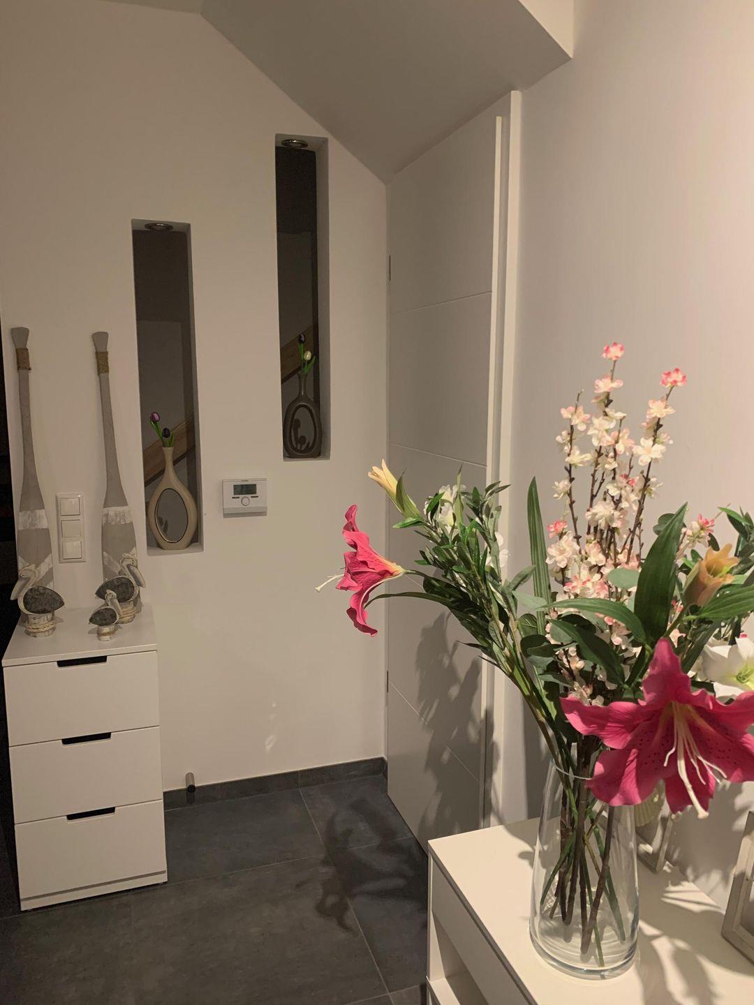 Haushalt: Staubsauger, diverse Reinigungsutensilien, Wäscheständer (im Abstellraum im Flur), Waschmaschine, Trockner