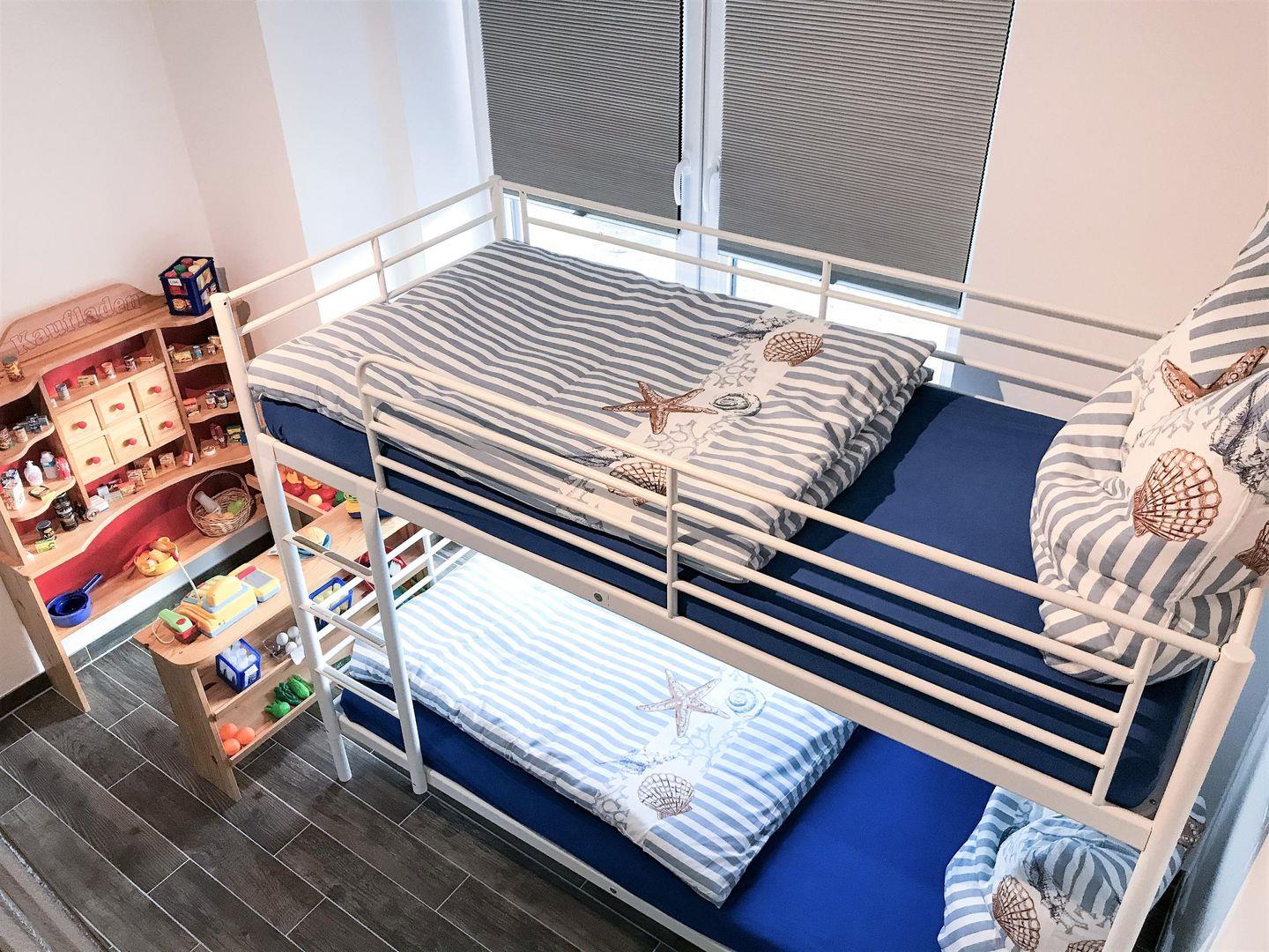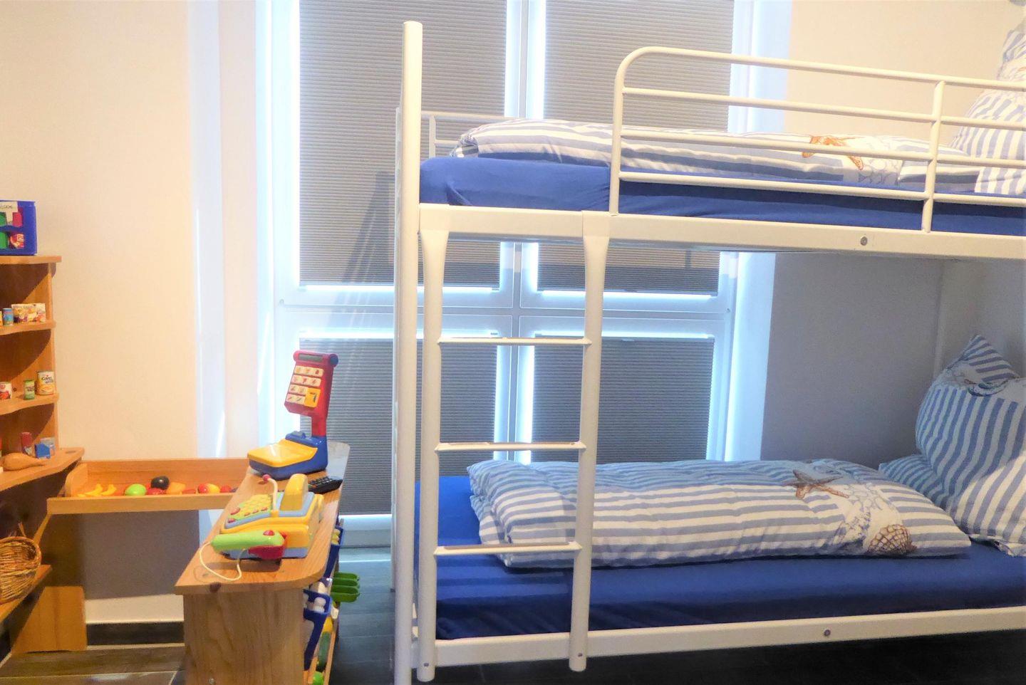 Schlafzimmer 3: Stockbett (Maße: 90 x 200 cm), Kleiderschrank