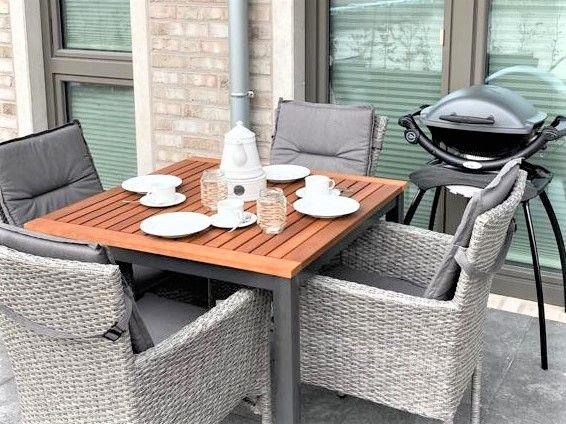 Ausstattung Außen: Rattan-Sitzgarnitur mit Tisch, PKW-Stellplatz - befindet sich nicht zwingend am Haus, Weber Elektro Standgrill
