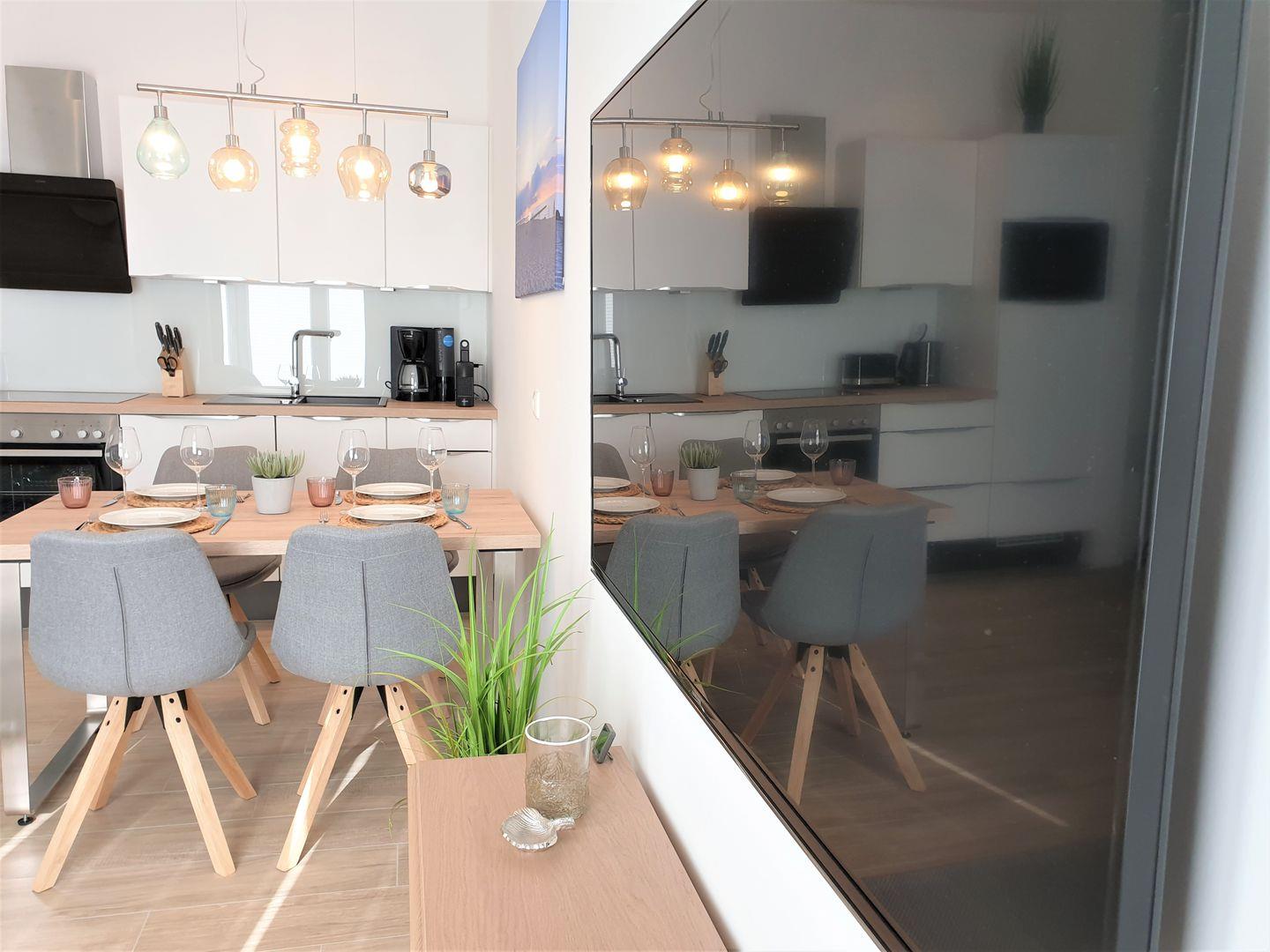 Der Essbereich und die offene, vollausgestattete Küche beeindrucken gleich zu Beginn.