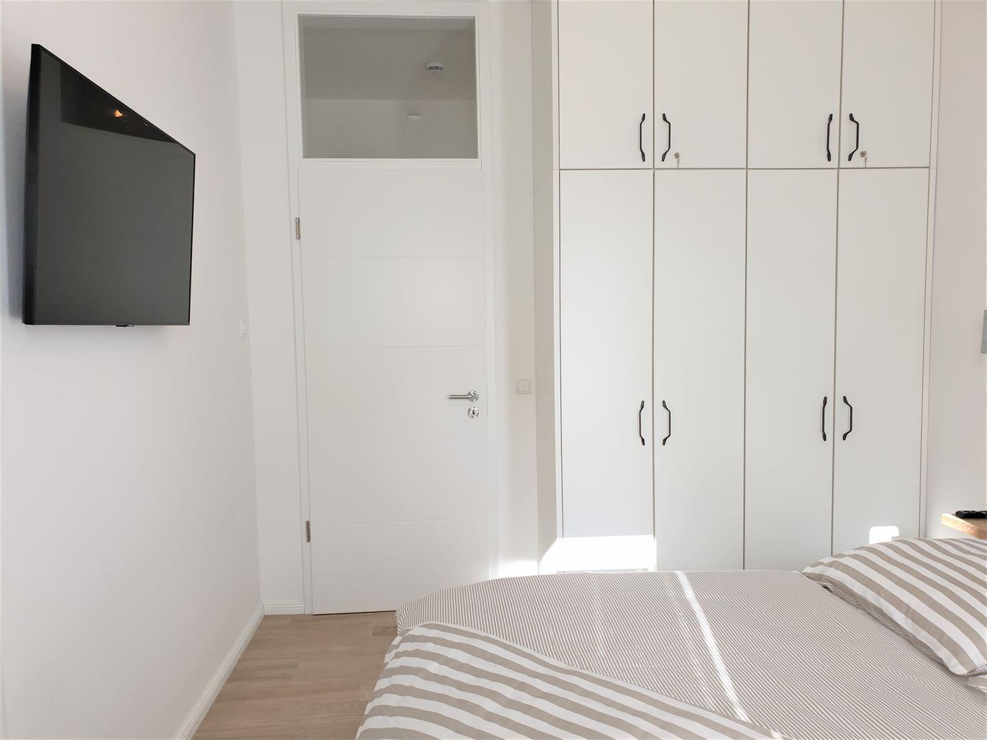 Schlafzimmer: Doppelbett 180 x 200 cm mit 2 Einzelmatratzen, Flachbildfernseher, Leselampen, XXL Schrankwand, Mückenschutzgitter