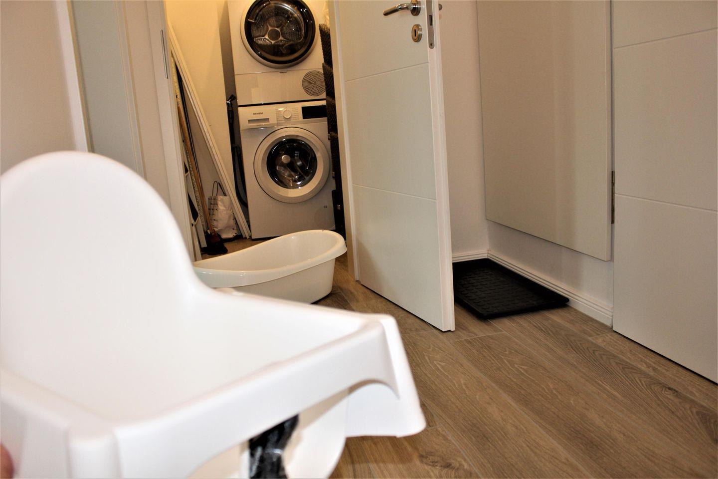 Haushalt: Waschmaschine, Trockner, Staubsauger, diverse Reinigungsutensilien, Wäscheständer, Bügeleisen und Bügelbrett