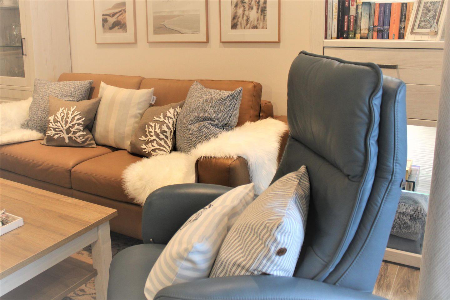 Wohnzimmer: gemütliche Couch, Sessel, Flachbildfernseher, Empfang deutschsprachiger TV-Programme (SAT-Anlage)