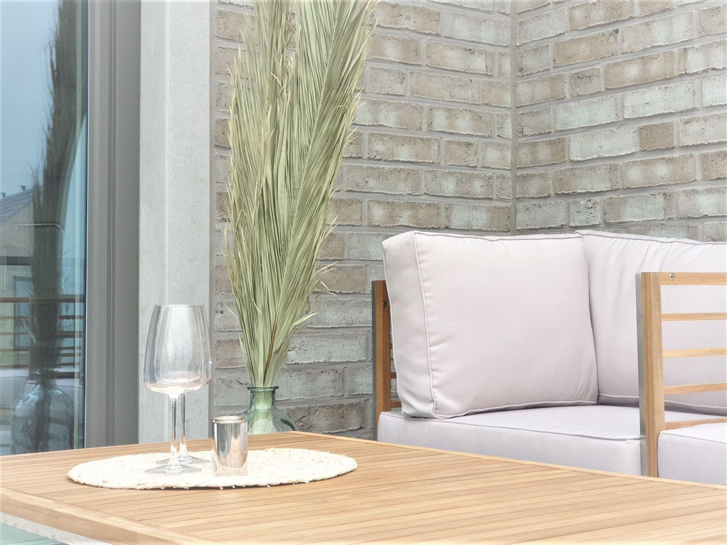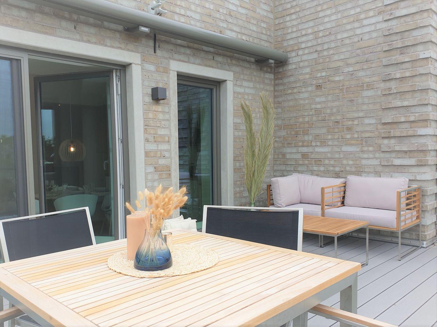Ausstattung Außen: Lounge Landschaft in L-Form, PKW-Stellplatz - befindet sich nicht zwingend am Haus, Insektenschutz, große Markise