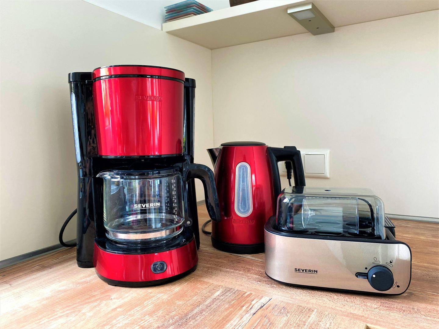 Küche und Haushalt: Einbauküche, Kühlschrank mit Gefrierfach, 4-Zonen Cerankochfeld, Backofen, Dunstabzugshaube, Mikrowelle, Geschirrspüler, Kaffeefiltermaschine, Toaster, Wasserkocher, Eierkocher, hochwertiges Geschirr und Besteck