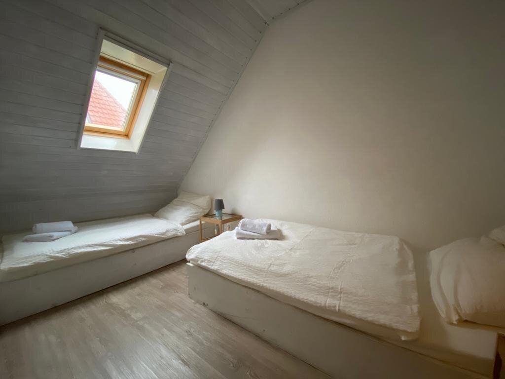 Im Obergeschoss finden Sie ein Vollbad mit Tageslicht, ein Elternschlafzimmer sowie ein Schlafzimmer mit zwei Einzelbetten. Über eine separate Treppe gelangen Sie in das ausgebaute Dachstudio mit zwei Einzelbetten.