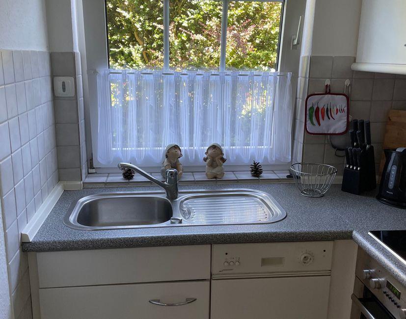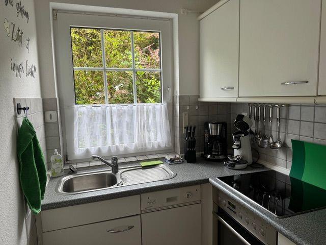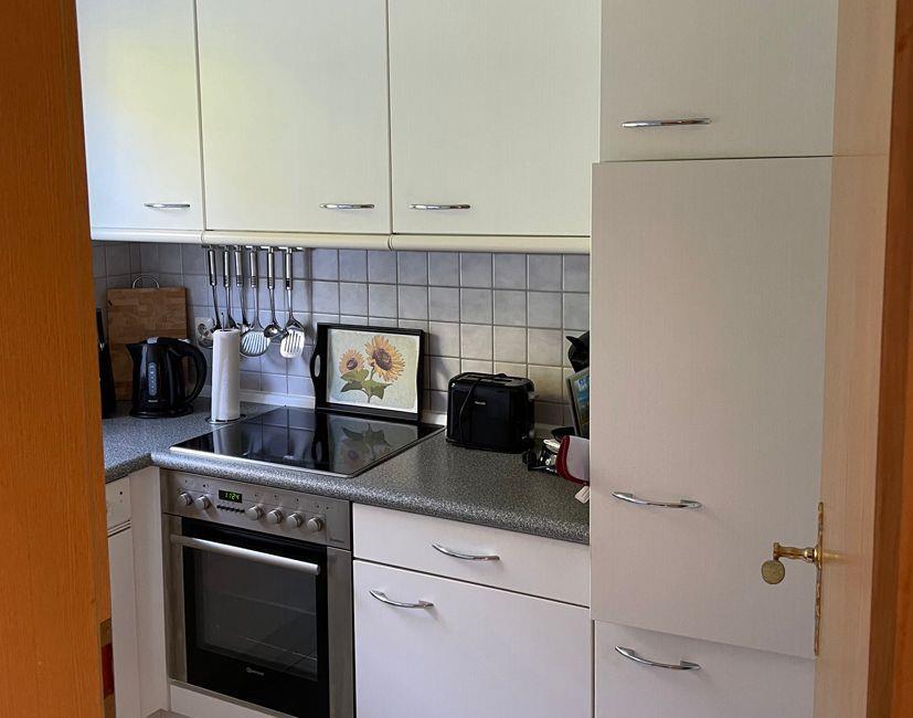 Es erwartet Sie der Eingangsbereich mit Gäste-WC und Garderobe, der Zugang zum großzügigen Wohn-und Essbereich mit einem TV und Blick auf die großzügige Terrasse mit elektrischer Markise. Eine Einbauküche mit allen notwendigsten Utensilien laden zum Kochen ein, ob ein Toast am Morgen und den leckeren Kaffee aus der Filterkaffemaschine oder die Pasta mittags.